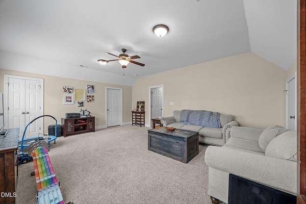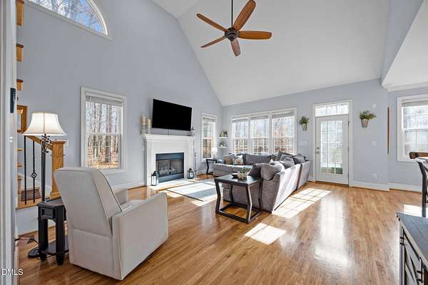 Discover comfort, space, and peaceful living in this beautiful Craftsman-style home nestled on a quiet cul-de-sac on over 4 acres! Just 10 minutes from I-85, it offers an easy commute to both the Triangle and the Triad while still providing a private, serene setting. The spacious main level features an open-concept living area with soaring ceilings, hardwood floors, and a cozy gas log fireplace. The kitchen is well-appointed with granite countertops, ample cabinetry, and a large walk-in pantry-perfect for everyday living and entertaining. A formal dining room and a luxurious primary suite on the main level include a large bath, shower and an oversized walk-in closet. Upstairs, you'll find two additional bedrooms and a versatile loft space ideal for a home office, reading nook or more, plus a large bonus that could be a playroom, or media area or bedroom. Walk in storage for all you decorations! Enjoy mornings on the classic rocking chair front porch or host gatherings on the oversized back deck overlooking a play structure, all surrounded by natural beauty. Lumos high-speed internet is available in the area.