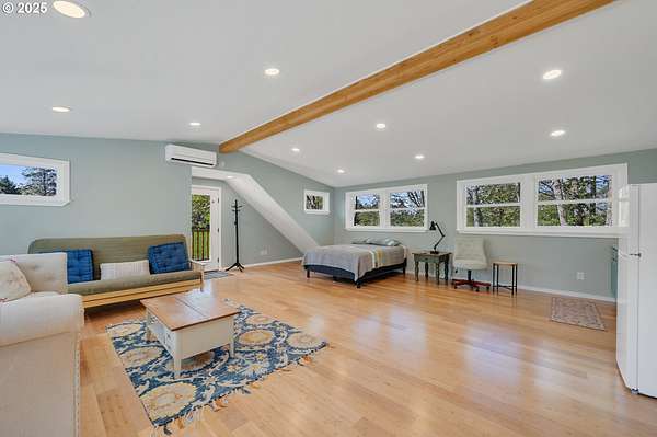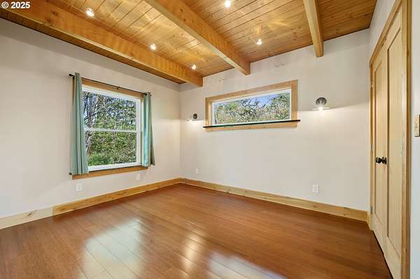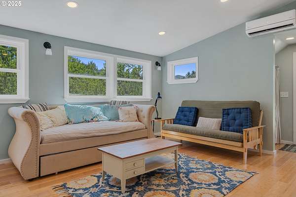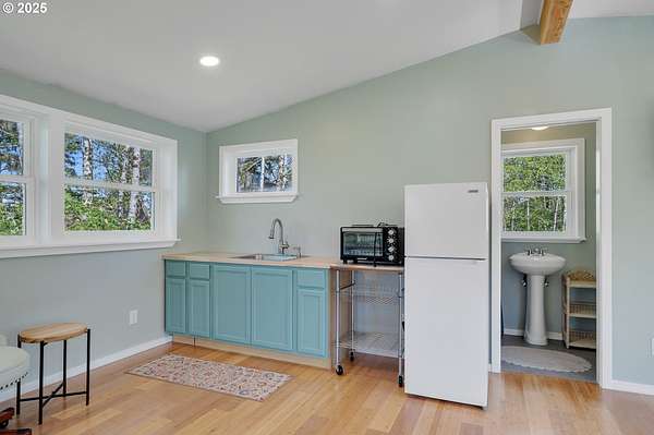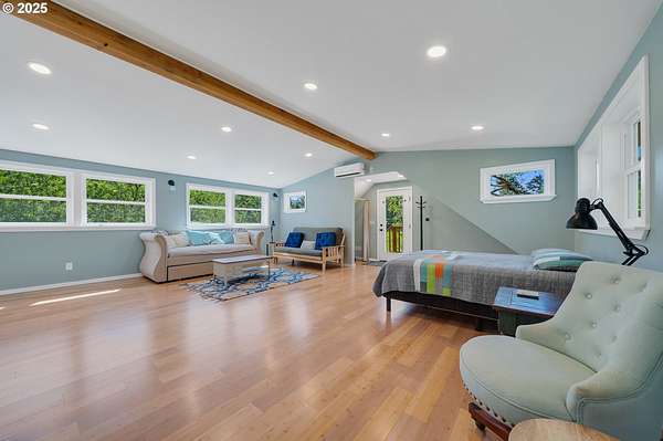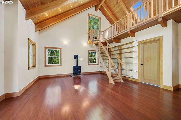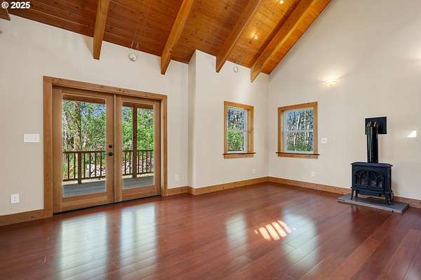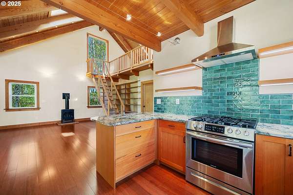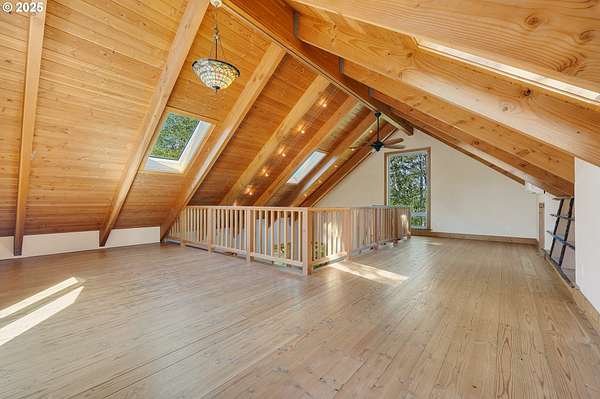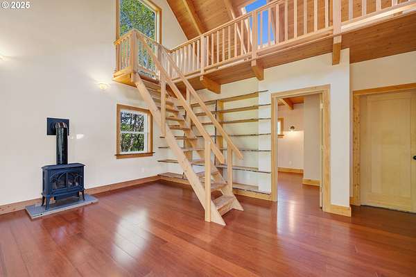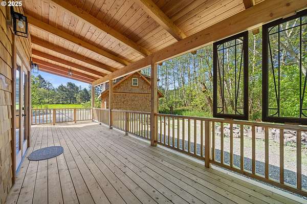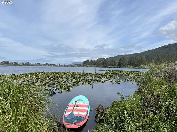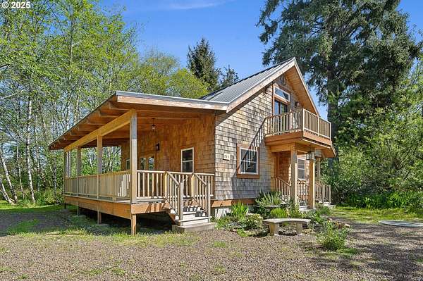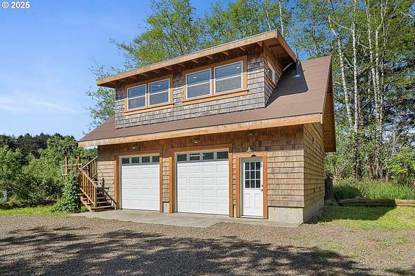 Nestled on two lots, totaling 5.26 acres in Rockaway Beach on serene Lake Lytle, this newer construction custom cabin & separate studio guest home perfectly blends modern luxury with rustic charm. Enjoy direct lake access for swimming, fishing, kayaking, or bird watching by water's edge. Cabin features high-end finishes, an open-concept living space, & skylights that fill home w/natural light. Gourmet kitchen, equipped w/top-of-the-line appliances, is ideal for entertaining. Propane fireplace, expansive covered deck, fenced garden! Main suite is loft-style upstairs w/custom live-edge built-in shelving. Bedroom 2 is conveniently located on main level next to a beautifully finished bathroom. Detached two-car heated garage includes finished studio apartment, perfect for guests. Easy to show