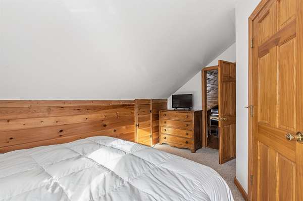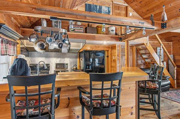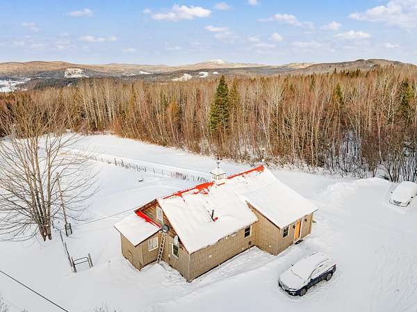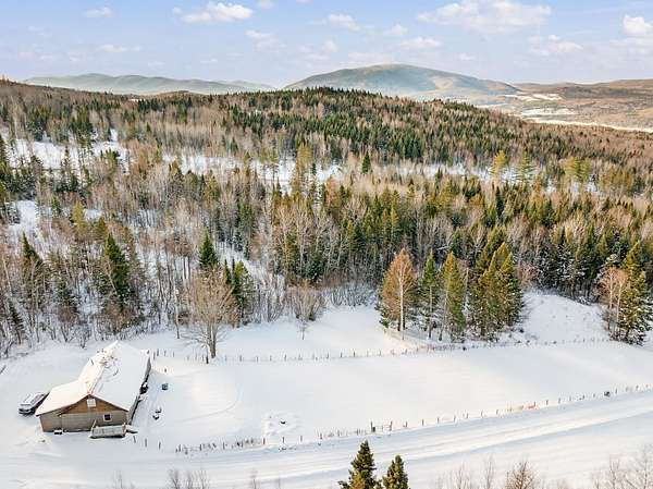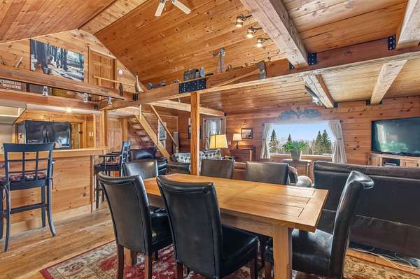 Privately situated on 12.65+/- acres, this beautiful 2-bedroom home offers custom woodwork throughout and mountain views. Enter through a spacious mudroom that leads into an open-concept kitchen, dining, and living area perfect for both everyday living and entertaining. The extended kitchen bar provides additional seating and serves as a natural gathering space. The main level is designed for comfortable single level living, featuring a primary bedroom with a 3/4 ensuite bath, a large pantry with convenient laundry room off the kitchen, a half bath for guests, and the mechanical room- all on the first floor. Upstairs, you'll find a second bedroom with its own 3/4 bath, along with an additional stairway leading to a cozy loft-style area ideal for a home office or reading nook. Step outside onto the large back deck and take in the peaceful mountain views. Snowmobile access from the property adds to the North Country lifestyle. Whether you're looking for a year-round residence or a relaxing getaway, this private retreat is not to be missed.