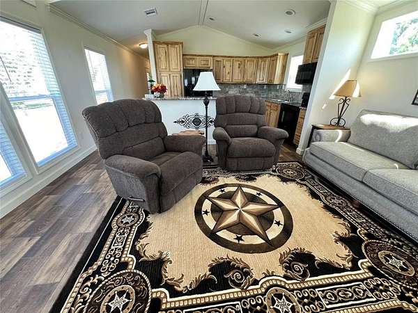 A gorgeous Smart Cottage product built in 2022 sitting on 7.6 acres of lush green pasture that is fenced and cross-fenced. The exterior of the home draws you in and the interior makes you want to sit and breathe! Windows allow bountiful light into the space. The main home is 2 bedrooms and 2 bathrooms and wasn't even placed on the property until early 2023 and has only been lived in for less than a year. All appliances to convey. It has a precious porch with a swing facing the tree line where you can watch the deer while enjoying your morning coffee. Two car metal carport. There are also two additional structures offering additional living space. One has a living room, bedroom, and a half bath. The second one is two rooms and does have water to it and is a great place for a man cave, too, or craft room! Water well on property in a recently built well house. Septic tank. New metal roof installed 2025! MOTIVATED SELLER, BRING US AN OFFER!