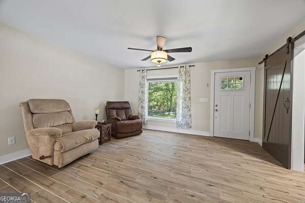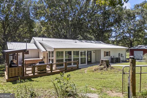 Calling all homesteaders--discover your own slice of paradise with this stunning hobby farm, offering serene living on 7 picturesque acres. This thoughtfully designed home features a modern kitchen with custom cabinets, quartz countertops, and stainless-steel appliances, opening into a spacious breakfast and living area with ceramic plank tile flooring. Enjoy the luxury of a separate bedroom plan with an additional flex room, perfect for a large walk-in closet or additional bedroom. Home office/bedroom off of the great room with barn door and spacious laundry room with custom cabinetry for storage. The expansive master suite boasts a vaulted solid pine tongue-and-groove ceiling, his-and-hers closets, and a beautifully appointed master bath with custom cabinetry and a large, tiled shower. Step outside to your own private oasis, complete with a recently added sunroom, a generous deck with covered grill area complete with outdoor fan/lighting/power for entertaining, a huge 12x18 rocking chair front porch with vaulted ceiling, and a 24x40 metal building on a concrete pad, ideal for hobbies or storage. There is also an old barn currently used for storage. Two additional parking sheds (24x24 and 12x20) provide ample space for your equipment or vehicles. The open land is partially fenced, offering endless possibilities for gardening, farming, keeping animals or building an additional house. Access the property via double road frontage on Teresa Atkinson Rd and Shackelford Road. A quaint orchard and a 30x60 pen with a custom-built doghouse/storage building, county water and underground utilities complete this remarkable property. With its prime location near I-85, this home offers an easy commute to Commerce, Athens, Anderson, and Lake Hartwell while keeping the quiet country lifestyle that so many dream of. Owner/Agent.