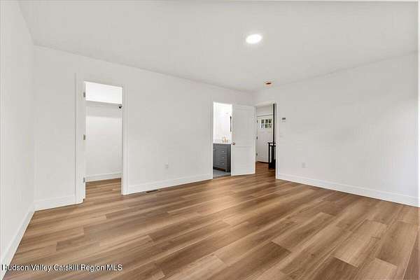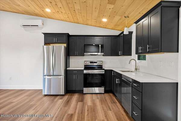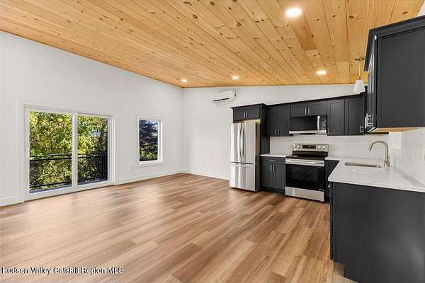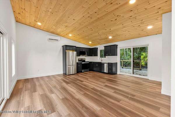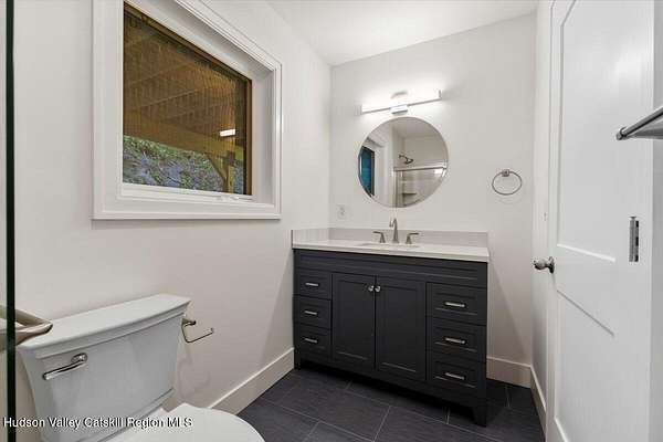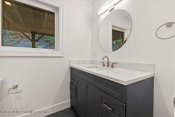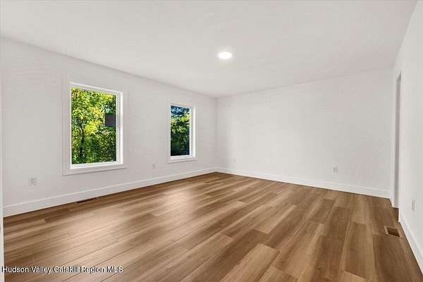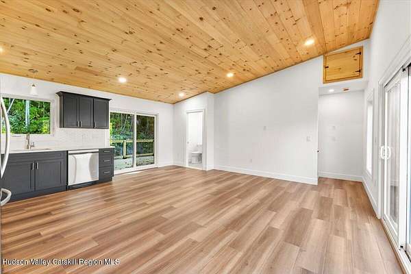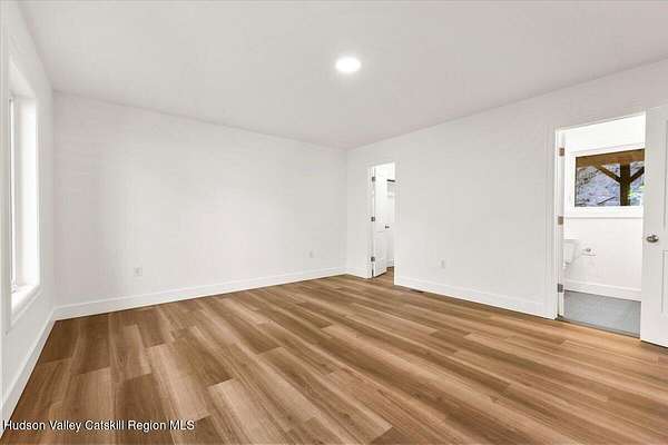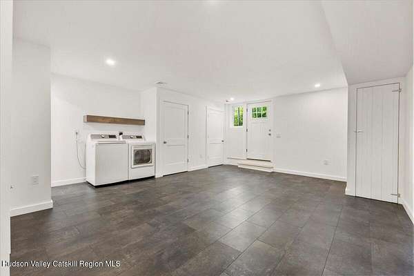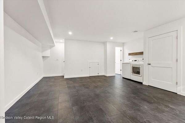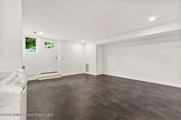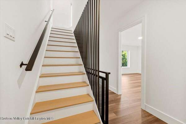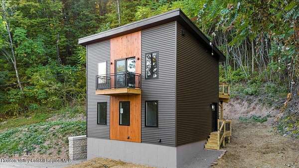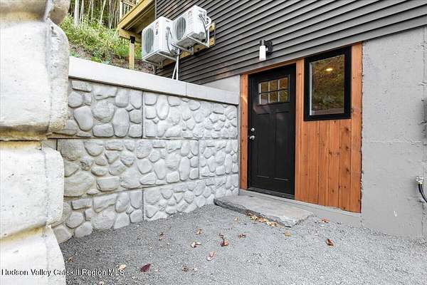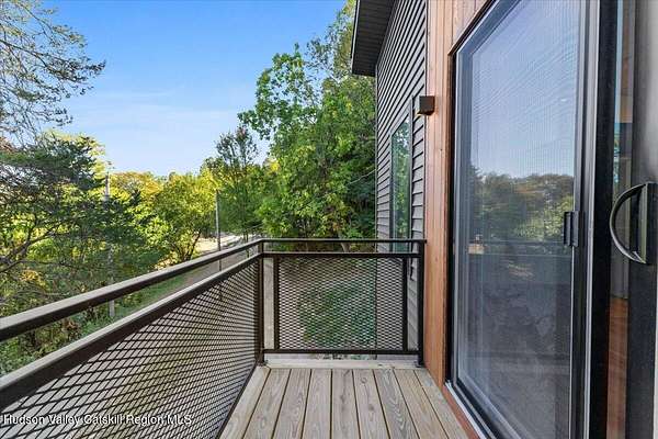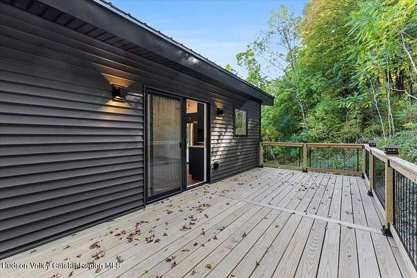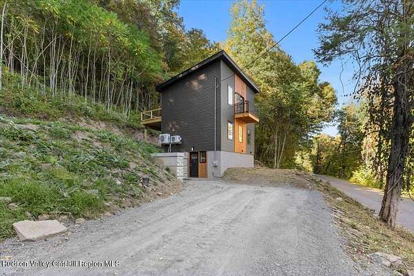Perched along a quiet country road, this completely renovated contemporary home offers a unique layout that blends comfort, privacy, and stunning Hudson Valley surroundings. The main living area, located on the second floor, features an open-concept design with kitchen, dining, and living spaces flowing together seamlessly. A half bath adds convenience, while sliding doors lead to a spacious back deck that feels worlds away-secluded in nature and perfect for outdoor dining or relaxing. At the front of the home, a balcony captures peaceful country views. On the first floor, you'll find the private en suite bedroom retreat, complete with a tiled walk-in shower and full bath. The finished walkout basement is where you'll find the 2nd bedroom and could also be used a studio, office, gym, or guest area. This level also includes a half bath, laundry, and mechanicals, making it as functional as it is versatile. All of this is just minutes to the Village of Catskill, Hudson River waterfront, and an easy drive to Hudson, Saugerties, and Woodstock-offering endless options for dining, shopping, art, and outdoor recreation in the Catskills. Whether for full-time living or a weekend escape, 711 Vedder Mountain Road delivers a perfect balance of contemporary style and Hudson Valley tranquility.
