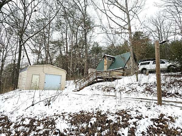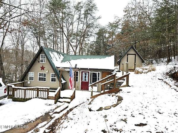 A huge front deck with lots of space to relax and enjoy the mountain feel. Inside you have vaulted ceilings over the large open living room and eat in kitchen with plenty of cabinets, counter space, and additional bar seating. There is a very large primary bedroom on the main floor complete with plenty of closet space and full bathroom. There is a second full bathroom on the main floor. Upstairs the seller finished out this space including two window ac's for added air flow. This is the perfect space for additional sleeping areas. A large detached garage with both a standard door and garage door entrance with lots of space to park your cars, motorcycles, and all of your toys. Concrete driveways from the road to the doors of both the chalet and the detached garage. Located just off of TN-72 that leads to the famous Hwy 129 and the Tail of the Dragon. This home has been a very successful short-term rental in the past, and is just waiting for you.