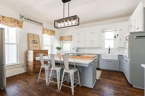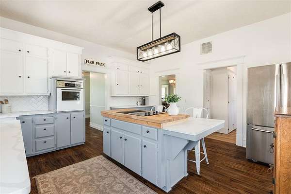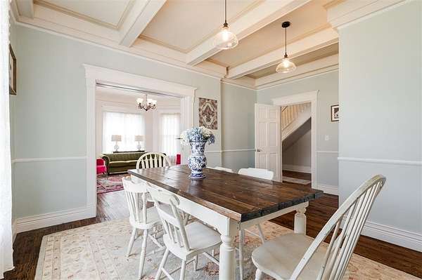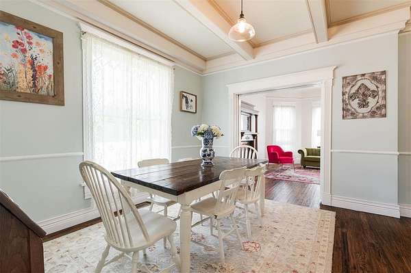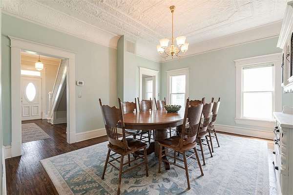Step into timeless elegance with this beautifully maintained Victorian-style home nestled on 5 acres in Norman city limits. From the moment you enter, you're greeted by a lovely staircase straight out of a movie scene, setting the tone for the character and charm that fill every corner of this home. You'll find original wood floors, detailed ceilings, and lovely woodwork throughout the home. The kitchen is both charming and functional, featuring quartz countertops, abundant cabinetry, and an island. With two spacious living areas and two dining spaces, including one that easily fits a table for eight or more, this home is ideal for both quiet mornings and festive gatherings. It also has plenty of space if a private study with an original fireplace is on your wishlist. Upstairs, the bright landing makes the perfect reading nook. You'll find generously sized bedrooms, including a huge primary suite with a private bath. The shared bathroom has a clawfoot tub, plenty of countertop space, double sinks, and a separate shower. All of the rooms are flooded with light! Outside, the property offers multiple outbuildings, including a detached garage, storage buildings, and a versatile shop complete with electricity, A/C, a sink, seperate rooms, and several workspaces. Create your own gym or store all of your toys. Whatever you're dreaming of, this space is ready to accommodate. This is more than a home, it's a rare opportunity to own something truly special.