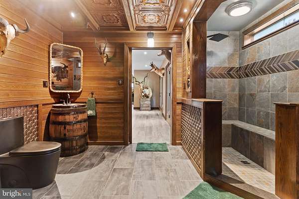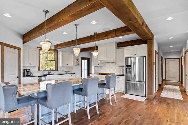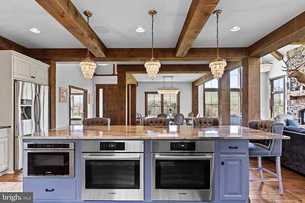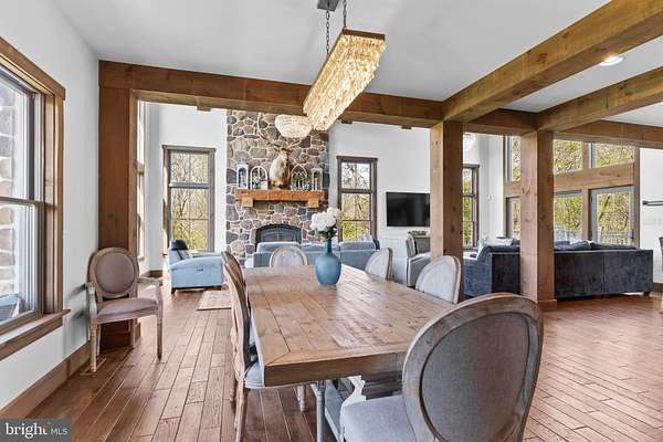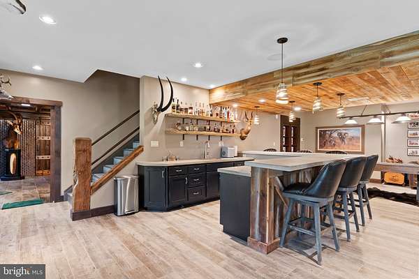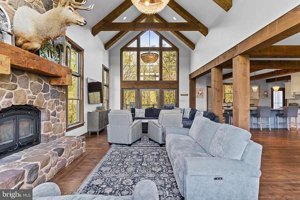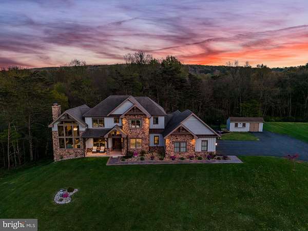 Stunning, rustic contemporary home with a perfect blend of character, security, and modern efficiency, set against picturesque mountain views in the heart of the Fishing Creek Valley. This beautifully updated, move-in ready Roland-built home offers a warm yet refined retreat designed for both everyday living and exceptional entertaining. Conveniently located to Harrisburg, Hershey, HBG Country Club, Major Transportation and Shopping. At the center of the home is a showpiece kitchen featuring a brand new Michelangelo quartzite island, freshly painted cabinetry, new backsplash, new icemaker, and newer appliances. Large windows surround the space, including a farmhouse sink overlooking the backyard, filling the home with natural light and framing scenic views. Expansive cathedral ceilings enhance the open feel while capturing the beauty of the surrounding blue mountains. Recent improvements include full interior and exterior repainting, all new designer light fixtures and chandeliers, new tile flooring in the office, and new carpet in the primary suite and four additional upstairs bedrooms. The main level also features a new guest bathroom vanity and fresh paint, creating a clean, updated feel throughout. Additional highlights include hardwood flooring, a desirable open floor plan, a functional mudroom, and push-button blackout shades in the primary bedroom and bath, along with blackout shades in all upstairs bedrooms. Designed as a true smart home, the property offers seamless control of multi-room audio, smart lighting, security, and cameras from a single easy-to-use interface accessible from any device. Enjoy premium speaker systems on the main and lower levels, 24/7 security with on-site recording and professional monitoring, and smart lighting with automatic and security-triggered activation. The fully finished lower level is an entertainer's dream, featuring a spacious retreat, a new full bathroom with coffered/copper ceiling, a custom walk in gun safe room, and a hidden Murphy door leading to a newly built storage area. A thoughtfully designed bar area with sink and brand new mini refrigerator creates the perfect setup for hosting guests or enjoying a private lounge space. Don't miss the heated flooring in the basement! Set on 25 private acres, this property offers unmatched seclusion, natural beauty, and abundant wildlife, including deer, turkey, and bear, making it a rare opportunity for outdoor enthusiasts. A creek winds through the property, enhancing the peaceful setting. Outdoor improvements include a freshly painted storage barn, newly painted bridge, a new driveway lined with Royal Burgundy cherry trees, and beautifully rocked front yard landscaping. Additional highlights include a 3-car garage with new Fox-coated flooring, an upstairs deck, and a covered lower-level patio. This home delivers a rare blend of lodge-inspired character and modern sophistication, all in a setting that feels like your own private mountain retreat. This home is for the most discerning buyers.