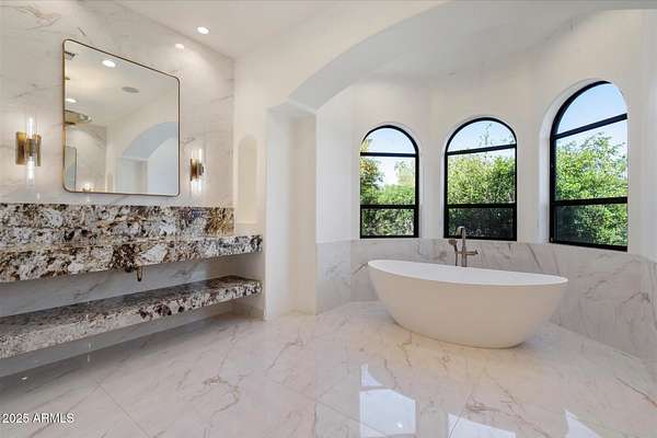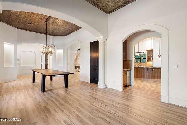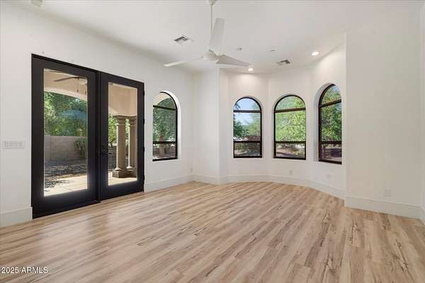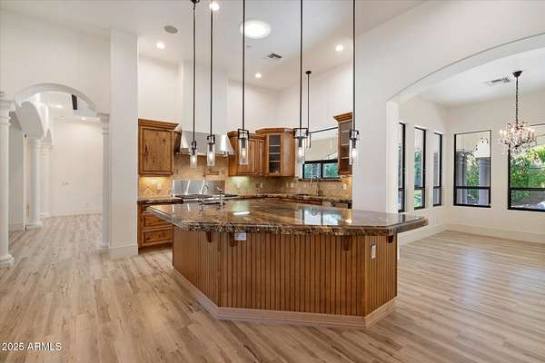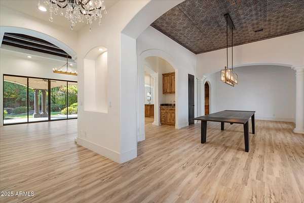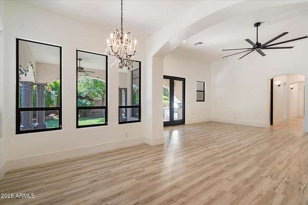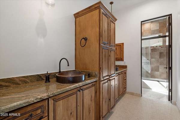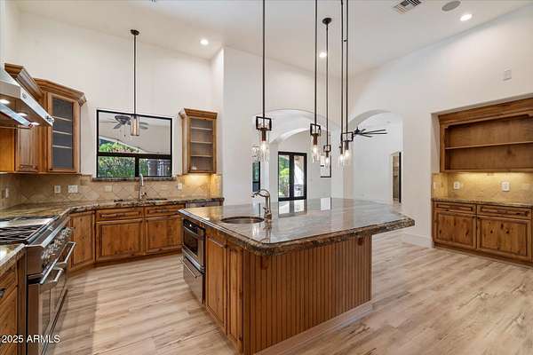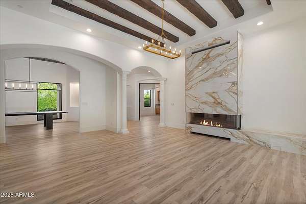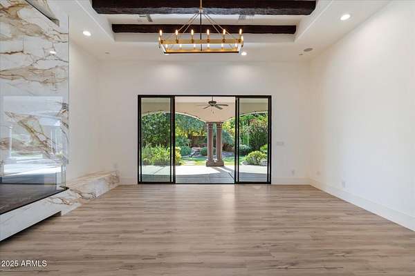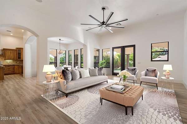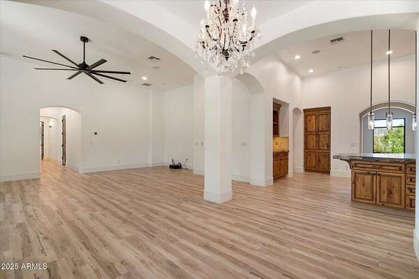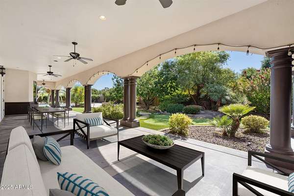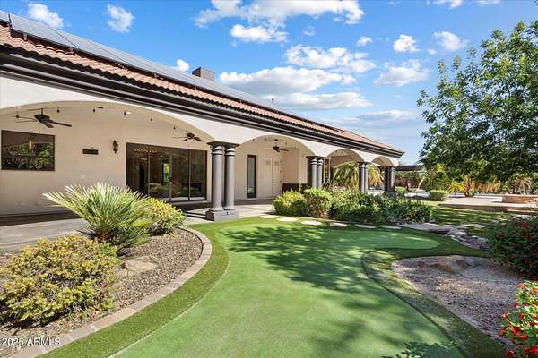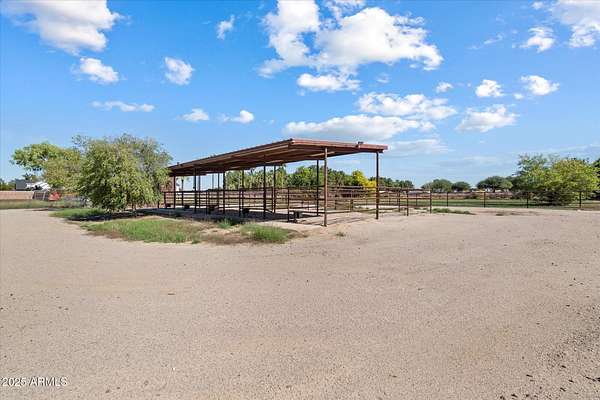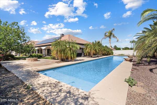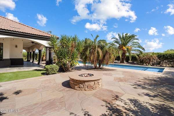 Welcome to a place where luxury living feels effortlessly warm and inviting. Set on nearly two acres of lush, private land in the heart of Romola, this charming horse property blends elegance, comfort, and Arizona beauty in perfect harmony. The home greets you with fresh exterior paint, a manicured yard, and a spacious three-car garage, setting the tone for the thoughtful details found inside. Step through the door and feel an instant sense of home. The living room's decorative wood beams, cozy fireplace, and soft natural light create a space that's both refined and perfect for gathering with friends or unwinding after a long day. The gourmet kitchen is a showstopper, featuring tall cabinets, stainless steel appliances, granite...CONTINUE READING... .....counters, and a large island that invites conversation over morning coffee. Just off the kitchen, a charming breakfast nook, comfortable family room, and private den offer versatile spaces for work or play. The primary suite is your own private retreat, with patio access, a spacious walk-in closet, and a luxurious ensuite adorned with dual sinks and elegant granite finishes. Every detail feels designed with both comfort and sophistication in mind. Step outside to your personal oasis an entertainer's dream and a peaceful escape all in one. The resort-style backyard features a sparkling lap pool, relaxing spa, built-in BBQ and bar, gazebo, putting green, and firepit for cozy desert evenings under the stars. With five well-kept horse stalls, irrigated grounds, and plenty of room to roam, this property offers the perfect blend of country charm and modern luxury. Beautiful, welcoming, and full of heart this is more than a house. It's the kind of home that feels like it was meant just for you. SEE DOCUMENTS TAB FOR LIST OF UPGRADES