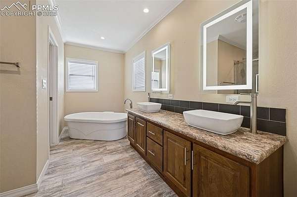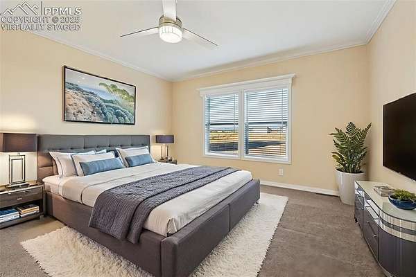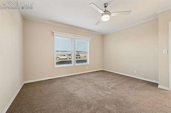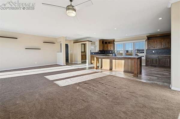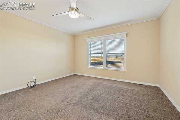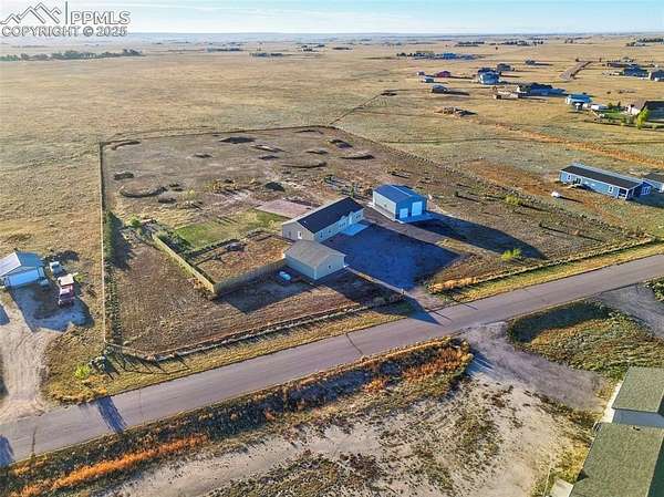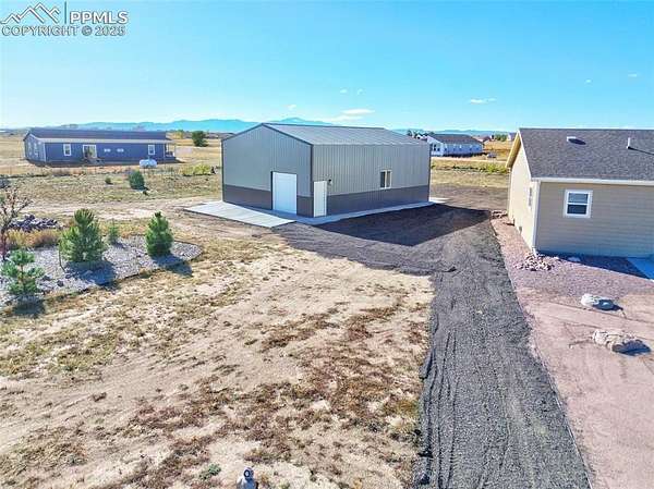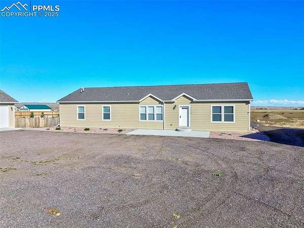 Breathtaking 5 ACRE rural property zoned for horses with views as expansive as the eye can see. This is a manufactured home built ADA compliant with two large detached garages with RV capacity. Driving up to the home an automatic solar gate with remote control provides access. The home and property have been well taken care of with attention being paid to the surrounding landscaping with a well manicured grass area, several sapling trees, bushes, and fences placed for privacy behind the home and along the property line. The home itself impress from the moment you walk in the front entryway beckons you in with a built in front table and coat storage closet. The home opens into the living and kitchen area that flows seamlessly together and basked in natural light flowing through the picturesque windows. The living room has a gas fireplace, perfect for those colder Colorado nights. The kitchen boasts a barstool height center island, gorgeous cabinetry and counter tops with ample storage and space, upgraded appliances, and space for a breakfast table. The home has four bedrooms with the primary being on one side of the home creating a private oasis with ensuite bath and walk in closet. The bath features a gorgeous modern tub, double vanity, and spacious stand alone shower. Across the living space are bedrooms two, three, and four that are all spacious and share a full bath with double vanity. Just outside the rooms is a built in desk perfect for a homework station or a space for the at home worker. Just beyond the bedrooms is a large laundry room. This home is pristine and while the home is more rural it provides ease of access to Shriever AFB, Falcon, and an easy drive into Colorado Springs.