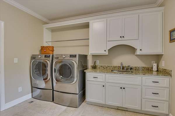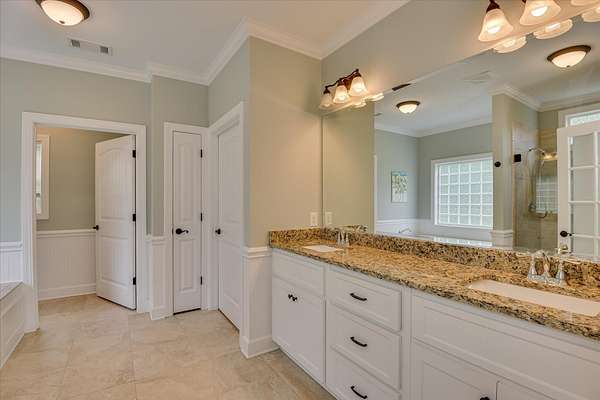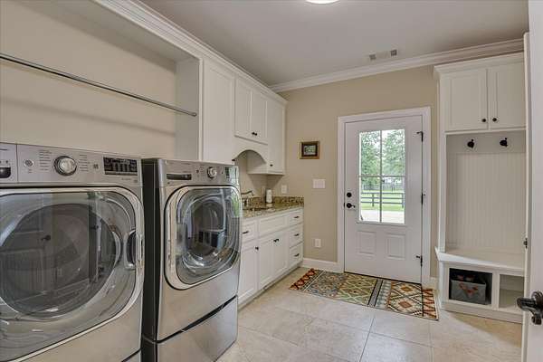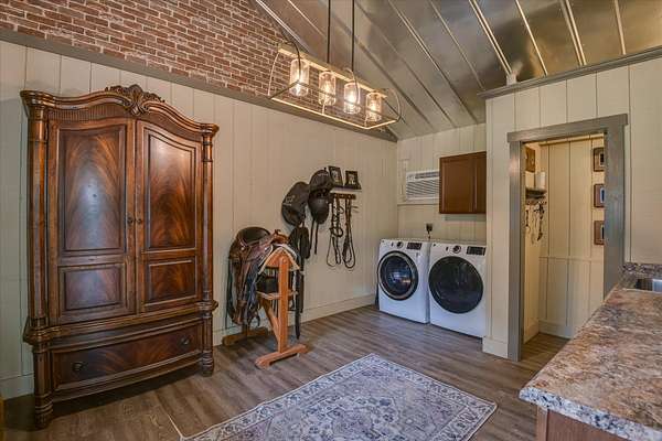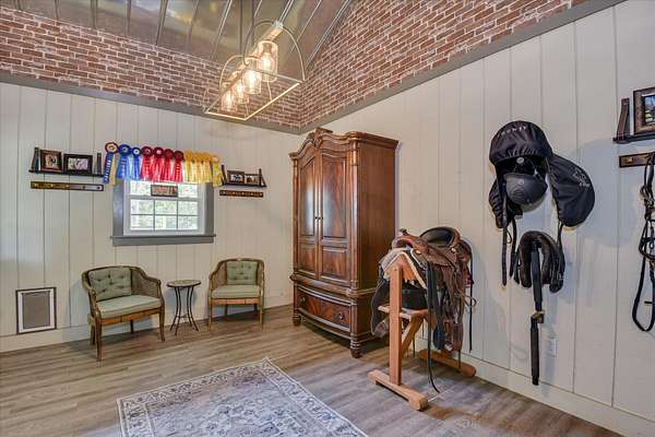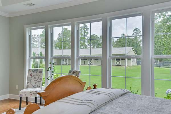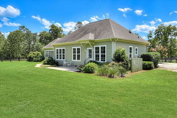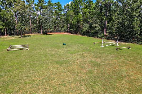 Nestled in Aiken's premier equestrian community, Three Runs Plantation, this private, gated estate with three-board no-climb perimeter fencing and a custom-built home with L-shaped barn offers the perfect balance of luxury living and equestrian convenience. This home offers rare flexibility - live as one expansive residence or close off a section (simply close a door) for a complete guest wing or private living quarters with its own exterior entrance and private patio, ideal for mulit-generational living, in-laws or potential rental income. Inside, the home features hardwood and tile flooring throughout the main level, a chef's kitchen with Bosch appliances, dual-fuel range, refrigerator, dishwasher, touch faucet, garbage disposal, custom cabinetry, a large walk-in pantry, and a second smaller pantry. A full second kitchen with its own dual-fuel range, refrigerator, touch faucet, dishwasher, garbage disposal, and walk-in pantry provides unmatched flexibility. The thoughtfully designed floor plan includes two primary ensuite bedrooms on the main level one in each wing, two additional bedrooms (one currently used as an office), and a spacious bonus suite with private bath upstairs. The main primary suite offers a serene retreat with abundant natural light, dual vanities, jacuzzi tub, frameless shower, separate toilet closet, oversized walk-in closet, and an additional double closet. The second primary suite includes a large, bright bedroom with large windows, single vanity, walk-in closet, and private bath with separate toilet and shower closet. If used as two separate living units, Primary living unit would have 3 bedrooms and 2.5 baths. The secondary area would have 2 bedrooms and 2 baths. Additional home features include: Two living rooms, one with a gas fireplace. Two dining areas. Two laundry/mud rooms. Granite countertops, crown molding, 9'-10' ceilings, and a central vacuum system with built-in baseboard dusters (perfect for pet owners). Large, screened porch and 2 patios overlooking the barn and paddocks. Oversized 2-car garage. Irrigation, 50-gallon gas hot water heater. Natural gas heat, VF drive pump system well. All controls for pump are located inside the garage. It only requires small 2-gallon expansion tank instead of traditional 40+ gallon tank. This system maintains a desired, constant set pressure and operates with a 1.5 hp pump. Presently operating at 70 psi providing amazing showers. Floored attic storage. The equestrian facilities include a 5-stall barn with rubber mats, heated auto-waterers, wash area with hot & cold water, hay storage room, tack room with washer & dryer and half bath, and an oversized workshop. Horses enjoy direct stall-to-paddock access, 2 large pastures (one fully irrigated, one partially irrigated), and a fully irrigated grass arena that can also be used for turn- out. The property is beautifully appointed with three-board fencing and no-climb exterior fencing, with a automatic gate and has direct access to the community trails. Three Runs Plantation residents enjoy 2 clubhouses, a fitness center, swimming pool, 2 dressage arenas, 2 jump arenas, a cross-country course, and over 30 miles of private riding trails. Just minutes away lies historic downtown Aiken, known for its charming shops, dining, and welcoming small-town atmosphere. Aiken is celebrated as one of the nation's top equestrian destinations, offering year-round opportunities for horse lovers: world-class horse shows, eventing competitions, polo, fox hunting, western disciplines, and extensive trail riding. This estate is designed for any equestrian, and suitable for any discipline, from the serious horse lover to the casual pleasure rider seeking luxury, flexibility, and a vibrant equestrian lifestyle-both at home and in the surrounding community.