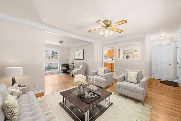 For the first time ever, this lovingly maintained country home is available for sale by the original family. Recent upgrades include a brand-new septic system, freshly poured garage floor, dual pane windows throughout, and ceiling fans for year-round comfort. Situated on a spacious and usable 1.7-acre lot, the property offers the perfect blend of peaceful country living and convenient access to downtown Vacaville. Tucked beneath a canopy of mature redwoods, the home welcomes you with a warm, inviting atmosphere and classic charm throughout. With tons of usable space and endless possibilities, you can build an ADU, expand the main residence, create a horse property, or design your ideal backyard retreat. Whether you're dreaming of a quiet escape, multi-generational setup, or investment opportunity, this Vacaville gem offers room to grow and make it your own. Don't miss this rare chance to own a versatile slice of country just minutes from town.
