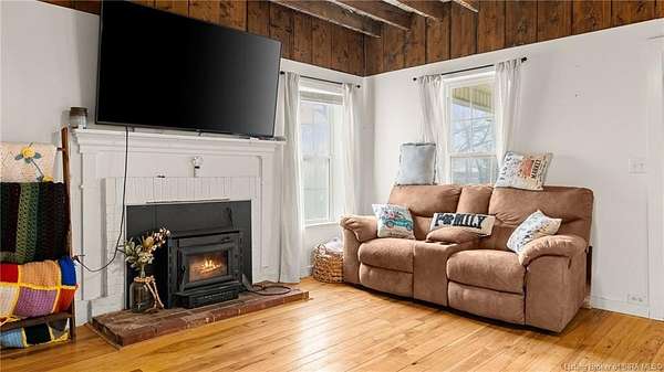 This beautifully renovated 1.5-story farmhouse sits on 1.8 acres, offering a great mix of character and modern updates. The main level features a welcoming living room with a cozy woodburning stove and beautiful exposed beams that showcase the home's farmhouse charm, along with an updated kitchen complete with stainless steel appliances and a new dishwasher. A versatile utility room also serves as a mudroom or den and includes a built-in bookcase, providing flexible space for an office or reading area. The home offers 3 spacious bedrooms, including two generously sized bedrooms upstairs, while both full bathrooms are conveniently located on the main level. Thoughtful renovations throughout make this home move-in ready while maintaining its warm, rustic feel. Outside, the 1.8-acre setting provides room to garden, enjoy the outdoors, or start a small hobby farm, and the shed currently used as a chicken coop adds to the property's country appeal.