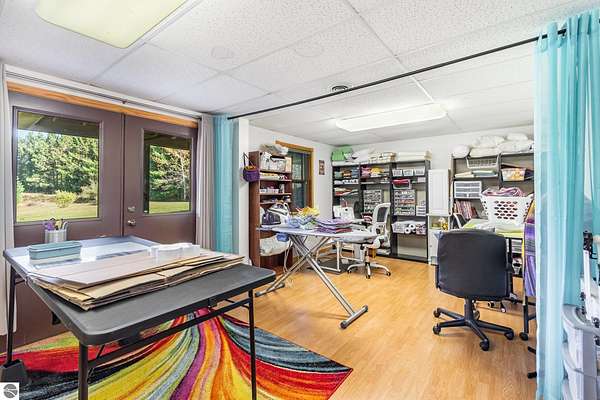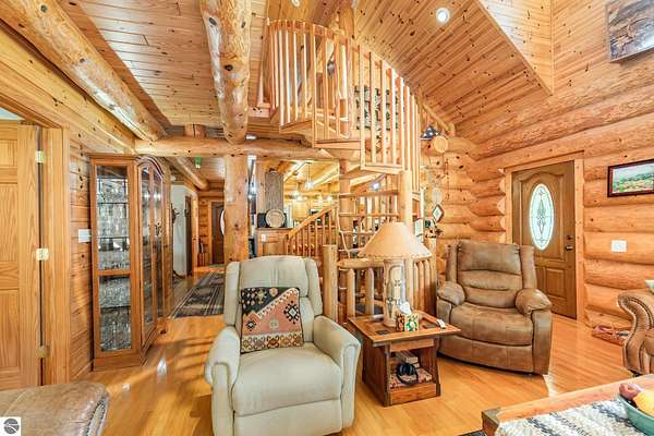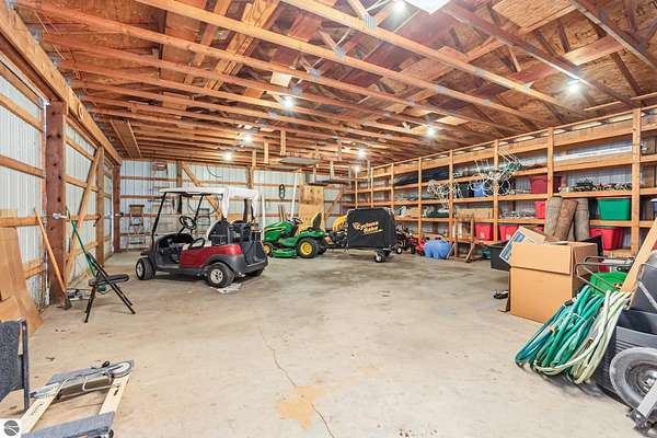 A NATURE LOVER"S AND HUNTER"S PARADISE! Custom built 2-story home with wraparound porch on 20 acres bordering Huron National Forest. 3 bedrooms, 2.5 bath, and fully finished walkout basement for over 3200 SQ. FT. living space. Main floor: wide hallway entry with 1/2 bath, primary suite with full bath, laundry room, and open concept kitchen/dining/living room. Upstairs: 2 generous sized bedrooms, full bathroom, extra-large open loft area. Well maintained hardwood floors throughout. Fully finished, open, walk-out basement with large storage room. The property boasts an orchard, a large established garden, 28x28 2car garage with drain, and an insulated deer blind. Whole-house generator, new in 2022. Asphalt driveway 20x86 steel pole barn with separate workshop, storage area, and RV garage all with power and lights. The workshop is insulated with wood burning stove and cement floor. Extra large storage area with cement floor, built-in floor to ceiling shelves, and sliding barn door for all your outdoor toys and equipment. RV garage has tall garage door with electric opener. Whether it's your new family home or luxury hunting lodge property, you are just 5 minutes to Hale, 30 minutes to West Branch or Tawas.
