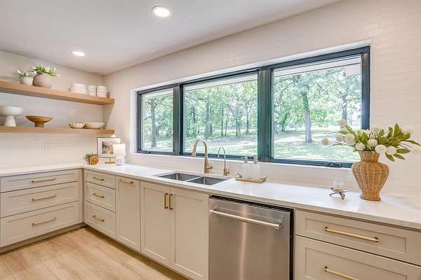 Absolutely stunning ranch-style estate set on 20+- picturesque, AG-exempt acres in highly sought-after Grandview ISD, where peaceful seclusion meets storybook charm. Tucked behind a gated entry and framed by mature oak trees, this meticulously maintained property features pipe fencing and cross-fencing—ideal for horses and livestock with rich, usable soil and a seasonal creek for horses. From the moment you arrive, the pride of ownership and attention to detail are undeniable. The heart of the home is a breathtaking, thoughtfully designed kitchen that blends style and function, perfect for everyday living and entertaining alike. Step outside to a stunning back patio, offering the perfect setting for morning coffee or evening sunsets, with plenty of space to build your dream pool. The property also boasts a brand-new 24x36 metal shop complete with plumbing, electricity, a dedicated office space, and covered parking, along with a newly added metal stable for livestock or equipment. Enjoy the convenience of a newly installed asphalt driveway, and an oversized garage featuring an insulated door and sleek epoxy flooring. A charming chicken coop can remain, adding to the authentic country lifestyle this property offers. With room to roam, grow, and create your dream ranch retreat, this one-of-a-kind property perfectly blends luxury, functionality, and tranquility—an absolute must-see.