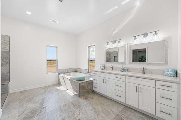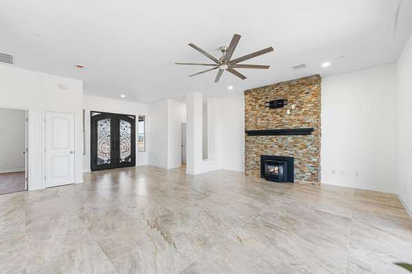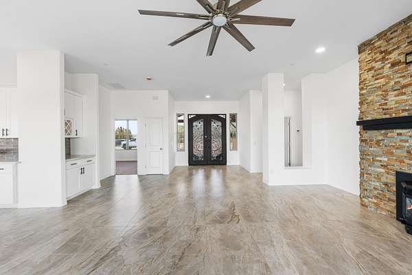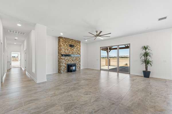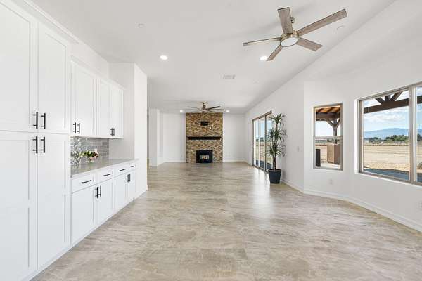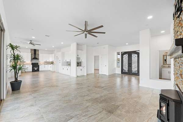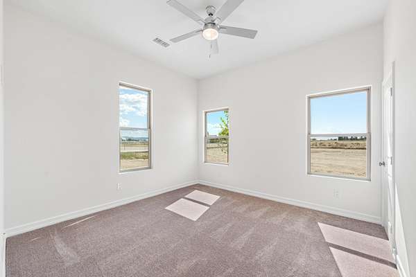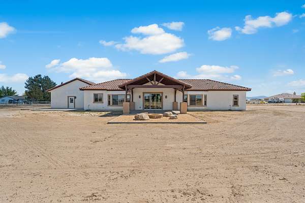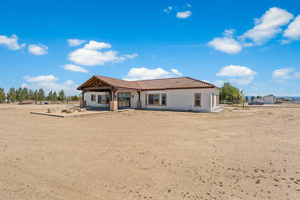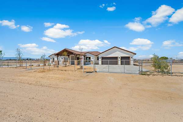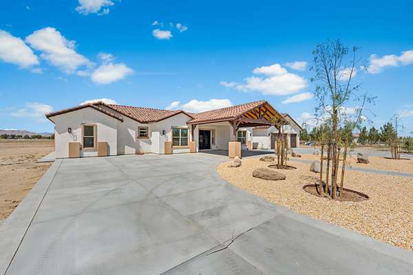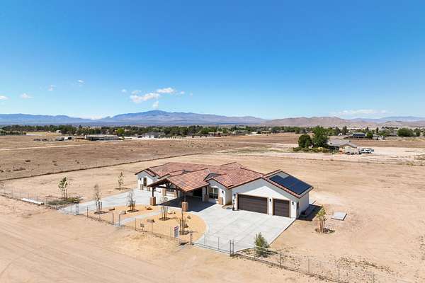 Stunning New Custom Built Home in Antelope Acres on 2.5 Acres. This home offers a seamless blend of luxury and comfort. You are welcomed through the Beautiful Double Doors and into the expansive open floor plan with 10 foot high ceilings and plenty of natural light that flows effortlessly into the living area with an energy saving wood Pellet Stove that will keep the entire house warm. The gourmet kitchen features a center island, sleek quartz countertops, extensive cabinetry with self closing drawers and farmer's sink. The oversized primary suite is a true retreat and boasts a Projecta Whirlpool soaking tub, separate walk-in shower, dual vanity and a walk-in closet. Guest bedroom with a private bathroom, plus two additional bedrooms for a total of 4 bedrooms and 3.5 baths. Ceiling fans, carpet in bedrooms and non-slip 2X4 tile throughout the rest of the house, Millard energy efficient windows and indoor laundry room. You will love the serenity and endless possibilities of the outdoor space on this fully fenced property with circular driveway, three car garage, gorgeous Porch, covered Patio, Fire Pit, partial hardscape, trees and the beautiful Mountain View. Additional features include a tankless water heater, fire sprinklers and PAID SOLAR. This home offers incredible value for the quality, materials and craftsmanship and it offers the possibility of a guest house and ADU.