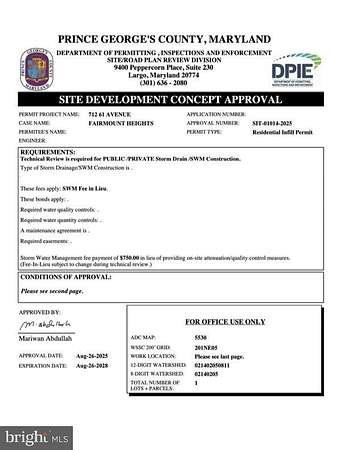 $200,000 in Equity -Shovel Ready -Permit Ready Lot -Multi-Generational New Construction House (All Permits and Floor Plans Approved) -Break ground now. Public utilities also already approved. NO HOA. Established community and blocks from Washington, DC and metro. We are selling the land with building permit and approved floors plans only. Nearby sold new construction comps start at $600,000 so land, plus construction leaves you about $200,000 in equity to profit. Bring your own contractors or use our guys, we have a full construction crew on stand by if you need our contractors to build this house for you at cost. Just ask. This house can be built for about $260,000 -$275,000 dollars. That will leave you with $200,000 in equity for your profit. Land is flat and already cleared, silk fence set up and ready to start construction. All utilities are approved and ready to go. Public water/sewer/electric and gas available at lot. Construction time frames are 2-3 months if our guys do the work. The approved floor plan is for a 4 or 5 bedroom house with 3.5 bathrooms, about 3,000 Sq feet and 2 car garage. Drive By and take a look- We do have a list of construction loan lenders if you need that. But, land must be purchased with cash. SOLD NEW CONSTRUCTION COMPS ARE 6219 L STREET and 6217 L Street, Captiol Heights, MD 20743 for $595,000 each and 6214 L street, capitol heights, MD sold for $650,000. This proves equity and value.