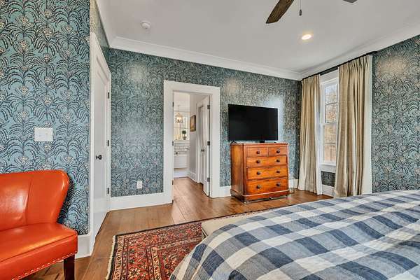 Wide plank hardwood floors, premium lighting selections & architectural details add warmth and sophistication, while the dream kitchen serves as the true heart of the home featuring high-end JennAir stainless appliances, custom Spencer Mill cabinetry, quartz surfaces, and a gourmet pot filler designed for both beauty and function. ?