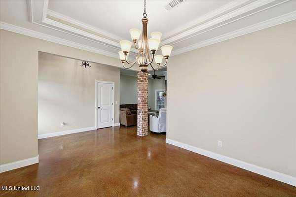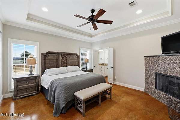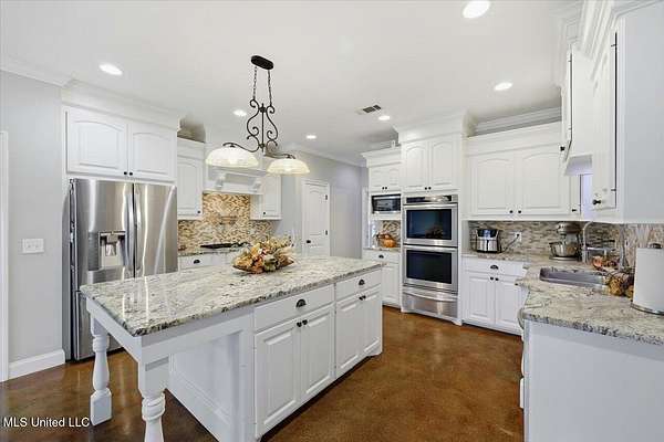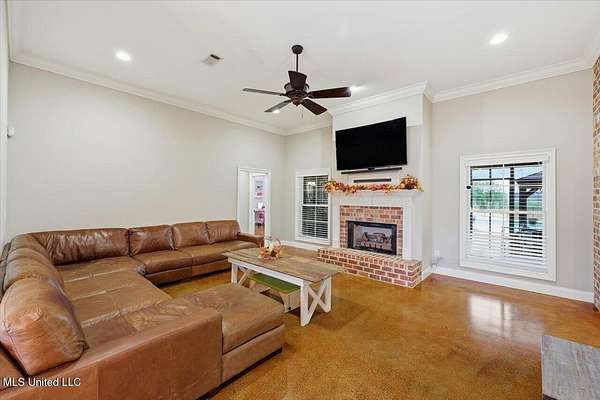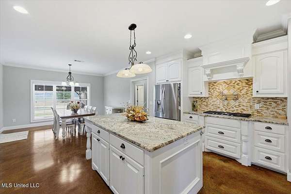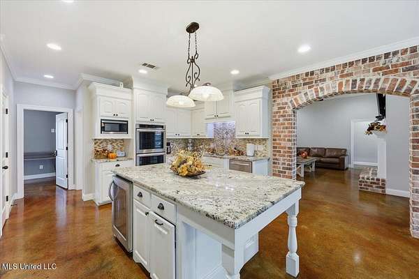With its luxury finishes, thoughtful layout, and unmatched amenities, this 4-bedroom, 4-bath Pelahatchie gem is truly one of a kind. Set on three charming acres, this stunning home has been featured on the Pelahatchie Christmas Tour of Homes and is rated a Comfort Advantage Home by Southern Pine Electric-offering thoughtful efficiency paired with high-end design. Inside, the grand foyer opens to a spacious floor plan crafted for both comfort and entertaining. Enjoy a formal dining room, a large living room with a fireplace and hidden electronic storage, a private office, a sun-filled breakfast area with gorgeous morning views, and an impressive chef's kitchen. The kitchen is a true standout with its oversized island, double ovens, beverage cooler, warming drawer, pot filler, generous pantry, and granite countertops-ideal for cooking and hosting. The primary suite serves as a private retreat, featuring its own fireplace, French doors to the patio, two oversized walk-in closets, a jetted tub, double vanities, and a spacious shower with a rainhead. For added privacy, a separate bedroom wing includes three additional bedrooms: one with its own ensuite and two that share a hall bath. Energy-efficient cellulose insulation and two tankless water heaters help keep the home comfortable year-round-no cold showers and lower utility costs. The heating system also includes an emergency heat option. Outside, the screened porch offers the perfect spot for quiet mornings or relaxing evenings, while the saltwater pool is ideal for beating the Mississippi summer heat. A wide walkway leads directly to the 30x40 deluxe shop, which is fully insulated with sheetrock and includes a full bathroom, mancave, its own hot water heater, wall-plumbed air lines, and two 16' commercial-grade doors. Low-maintenance exterior features such as vinyl eaves and gutters add even more convenience. With beautiful sunrise and sunset views, ample space, and quick access to I-20, this home offers the perfect blend of luxury and country serenity.