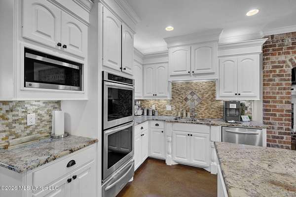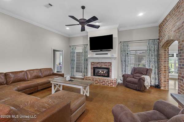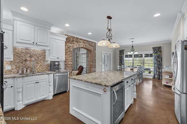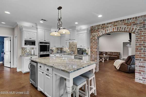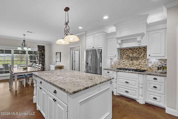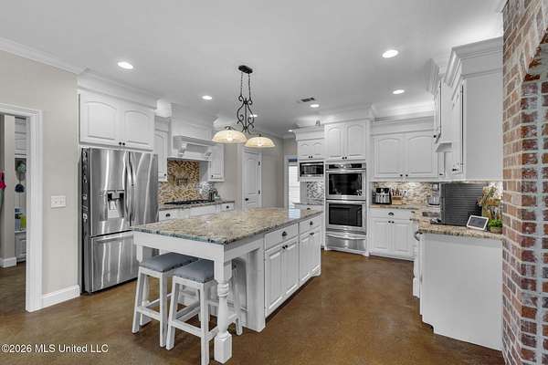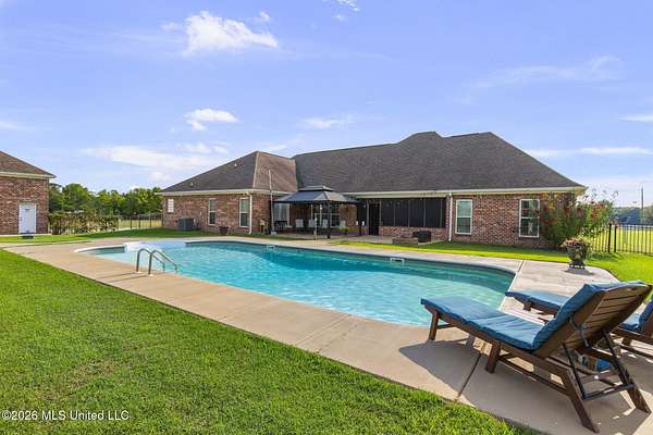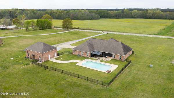 Looking for luxury, space, and Southern charm? Previously featured in the Pelahatchie Christmas Tour of Homes and rated as a Comfort Advantage Home by Southern Pine Electric, this gorgeous four-bedroom, four-bath mini-estate on three picturesque acres checks every box -- and then some. Step through the elegant foyer into a sprawling, entertainer's floorplan featuring: formal dining room, large living room (with fireplace and hidden electronic component storage), dedicated office, bright breakfast area with sunrise views and a chef's kitchen. The kitchen will truly wow you with its oversized island, double ovens, beverage cooler, warming drawer, pot filler, large pantry and granite with extra special edging. Set up perfectly for cooking and entertaining! Guests have access to their own bath, right off of the entertaining spaces. The primary suite is a true retreat with its own fireplace, French doors to the patio, dual oversized closets, jetted tub, double vanities, and a spacious shower with rainhead. On the opposite wing: three additional bedrooms -- one with a private ensuite and the other two bedrooms sharing a hall bath. You'll be cool in the summer and warm in the winter thanks to the cellulose insulation. Two tankless hot water heaters insure there are never any cold showers. The heat comes with an emergency heat setting too. Step outside and soak in the peace of country living. The screened porch is perfect for morning coffee or evening wine. Fall evenings would be a dream here! There is a saltwater pool that's perfect for beating the summer Mississippi heat! An extra wide walkway gives poolside access to the full bath in the 30x40 deluxe shop. No wet footprints in the house! The shop has a full bathroom and a mancave. The shop has a fully insulated sheetrock interior, has two 16' commercial-grade doors, wall-plumbed air lines and a hot water heater. The home's exterior is easily maintained thanks to vinyl eaves, and gutters. With sunrise and sunset views, beautiful acreage, and quick access to I-20 -- this Pelahatchie gem is truly the best of both worlds. Don't miss your chance -- schedule your private tour today!