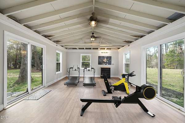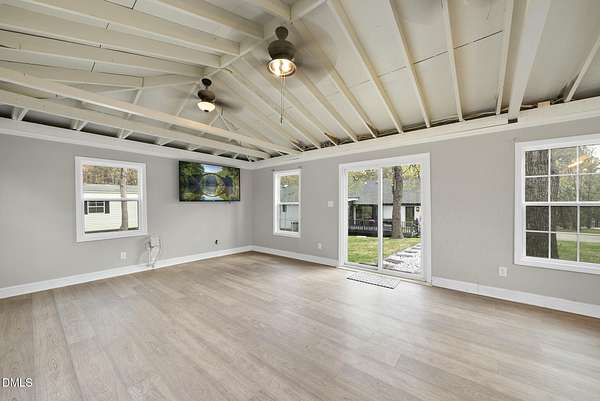 Welcome to 712 Malbay Lane! An exceptional opportunity in the heart of North Raleigh offering the perfect balance of location, breathtaking updates, and everyday comfort. Situated in a well-established neighborhood known for its convenience and charm, this home provides easy access to everything while still enjoying a peaceful, low-traffic setting. Inside, you'll find a thoughtfully modernized interior with updated flooring, including tile and carpet replacements completed in 2019. Major system updates provide added confidence, including a newer roof (2024) and a gas water heater (2026), and updated HVAC system (2025). The open layout and vaulted ceilings offer comfortable living spaces designed for both relaxing-by a gorgeous fireplace, and entertaining-in the kitchen with plenty of counter space and seats for gathering with friends and family. Downstairs, enjoy a movie room and 4th bedroom with ensuite bath, as well as a flex space for crafting, an office, or additional storage. Step outside to the backyard, with a deck, screen porch, and wired outbuilding-perfect for a yoga retreat, separate office space, or whatever flexibility you may need. The location truly stands out, just minutes from shopping, dining, and everyday conveniences. Enjoy close proximity to North Hills, Lafayette Village, and a variety of popular restaurants and boutiques. Outdoor and recreational options are nearby with parks and greenways, and the YMCA is just around the corner. Commuting is seamless with quick access to major roads including Falls of Neuse and I-540. This home offers the rare combination of a connected, active neighborhood feel with the ability to enjoy quiet surroundings on an expansive 2+ acres, making it a standout option in one of Raleigh's most desirable areas.