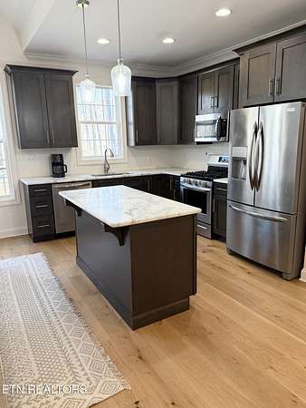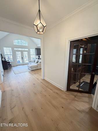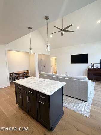 Discover the perfect blend of rustic charm and modern updates in this stunning farmhouse-style cottage. Situated on a private, wooded 1.9-acre lot in Lake Tahoo Estates, this 1,893 sq. ft. gem features striking cedar shake accents and a welcoming covered front porch with a warm wood ceiling. Inside, the open floor plan shines with natural light from large transom windows and vaulted ceilings. Recently partially remodeled, the home boasts updated hardwood floors, fresh paint, and a newly added dedicated office space. The kitchen is a chef's dream with solid surface counters, a central island, recessed lighting, and a gas range. The primary suite offers a vaulted retreat with two spacious closets, a tiled shower, soaking tub, and dual sinks. Enjoy crown molding and ceiling fans throughout, plus a spacious laundry room. Outside, relax on the back deck or utilize the detached storage. Includes a side-entry 2-car garage and gravel drive. Zoned for Griffith Elementary and Sequatchie schools.