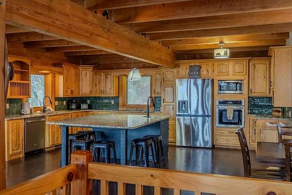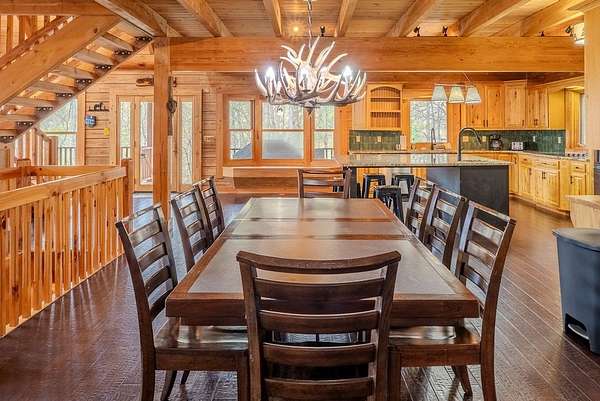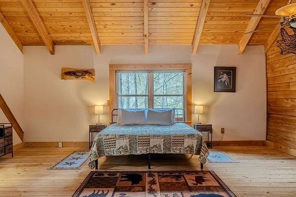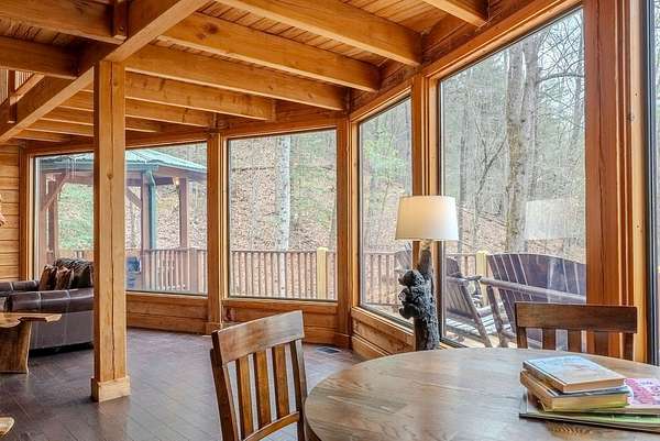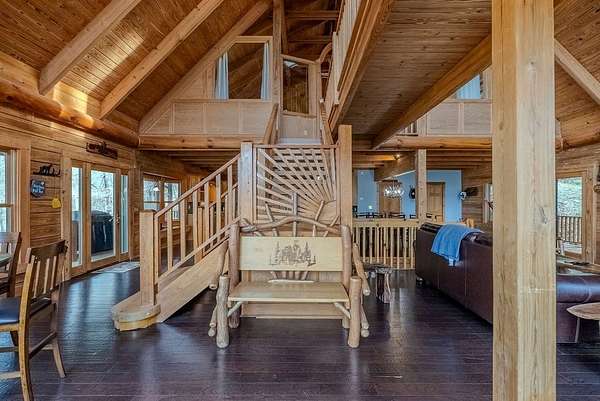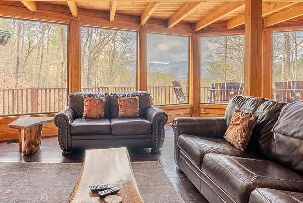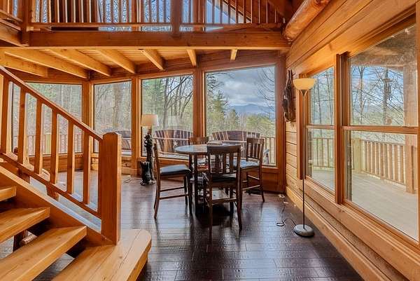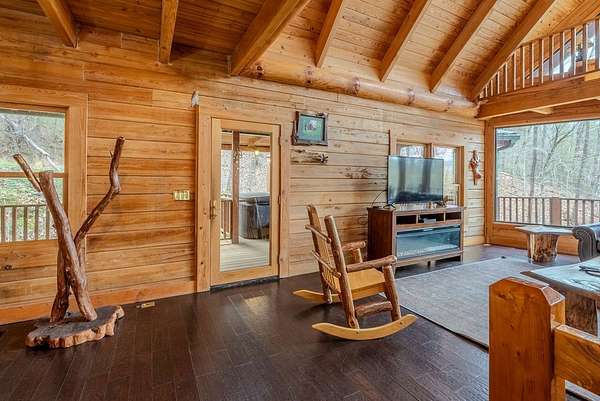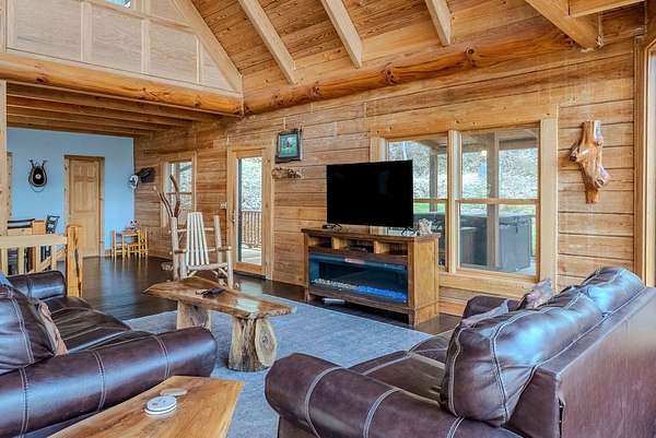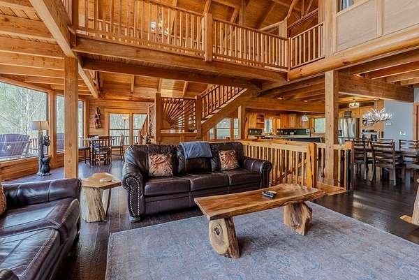Private, turnkey, and already producing, this custom timber-frame cabin offers long-range mountain views, strong rental performance, and the setup today's guests are looking for, along with over 3.8 acres of private land in a gated community. Inside you'll find hardwood floors, cathedral ceilings, and an open layout centered around a spacious kitchen with new granite countertops and appliances. Multiple living areas and added bunk sleeping make it ideal for larger groups, while the fully finished lower level doubles as a game room with a pool table, poker table and air hockey. Step outside to enjoy the hot tub, updated decking, and peaceful mountain setting. Recent updates include a brand new HVAC and furnace, updated furnishings, and new lighting-making this a ready to go investment. While the features are impressive, the real story here is the income potential. This is already a successful STR, and that's with the current owners taking a minimal, mostly Airbnb-only approach. A more hands-on strategy with expanded marketing and platform exposure could significantly increase bookings and revenue. A rare chance to step into a proven property with clear upside potential from day one.