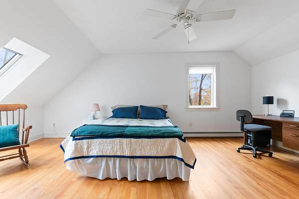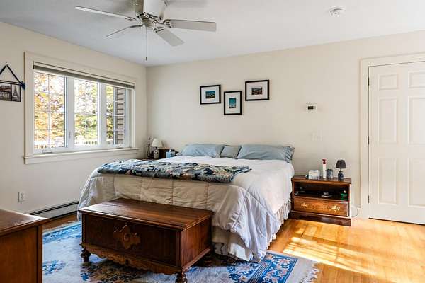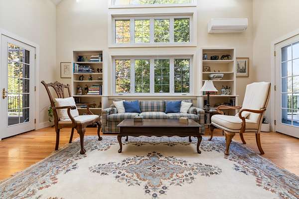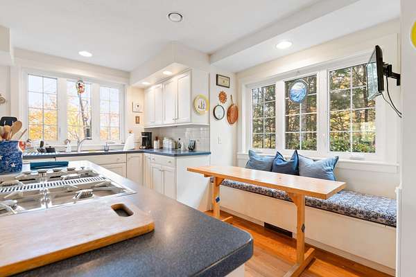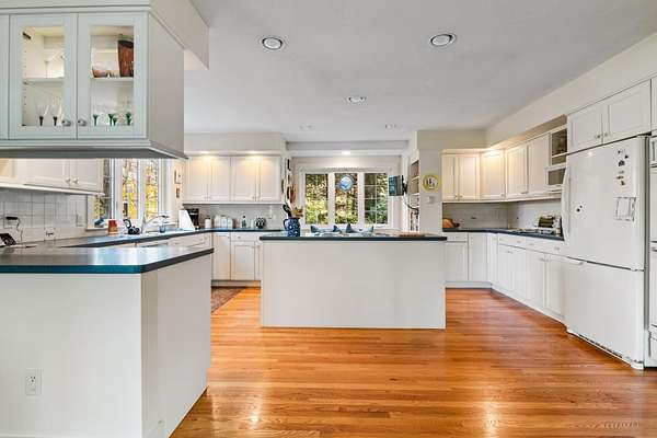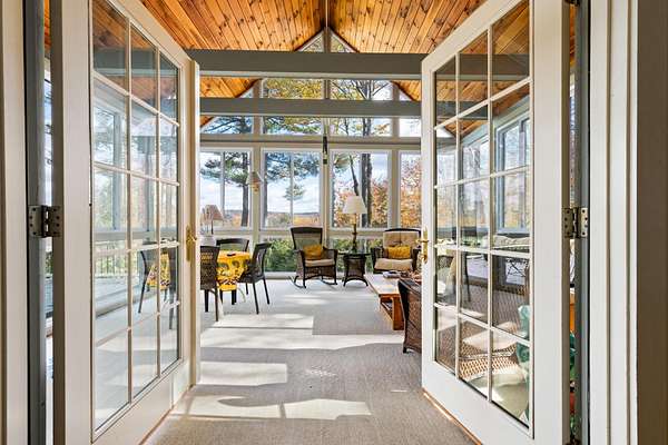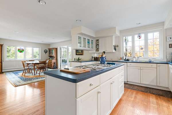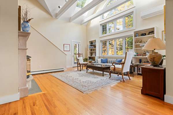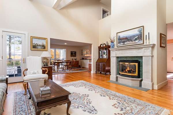 Welcome to this spacious open-concept home tucked away in the highly desirable Slope N Shore community of New London, NH. Designed for comfort, style, and entertaining, this property features beautiful hardwood floors throughout and a bright, open kitchen with custom countertops, attractive cabinetry, a cooktop island, and a generous dining area. French doors in the dining room lead to a charming sunroom and a brand-new Trex deck overlooking the back side of Morgan Hill. The light-filled living room boasts vaulted ceilings, a gas fireplace, and oversized windows that frame lovely views. The walkout daylight basement offers additional living potential, complete with a temperature-controlled wine cellar. Set on a peaceful, private lot, this home combines tranquility with community living. Also enjoy Slope N Shore's private beach, tennis and pickle ball courts.