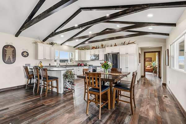 Very motivated seller relocating to WY. Rare opportunity to own 86+ irrigated acres including both sides of the river, offering unmatched versatility and income potential. Raise your own cattle or lease it out with confidence. This property is fully set up and ready to run pairs or yearlings. Includes 250+ ton hay barn, covered and lighted alleyway with preg-checking box, squeeze chute, equipment barn and multiple large and small storage buildings. Enjoy Lost River frontage, breathtaking 360' views, this ranch sits in the waterfowl flyway and has exceptional hunting. The 3 bed 2 bath home has been completely remodeled top to bottom with high-end finishes and rustic charm. Everything is new. Electrical, plumbing, heat pump, furnace, roof windows, flooring, inside and out. The open concept layout is bright and inviting. Perfect for everyday living or entertaining. Horse lovers will appreciate the stalls with paddock and pasture. Pipe top rail with no climb fencing. Endless opportunities