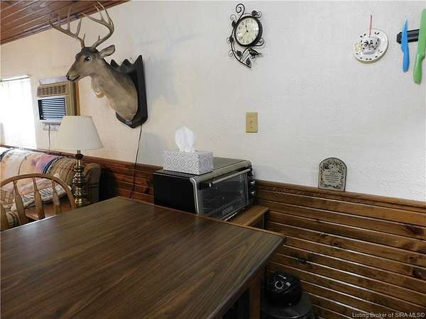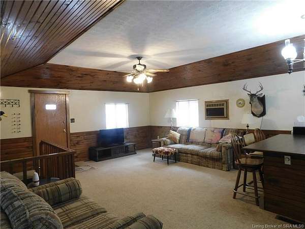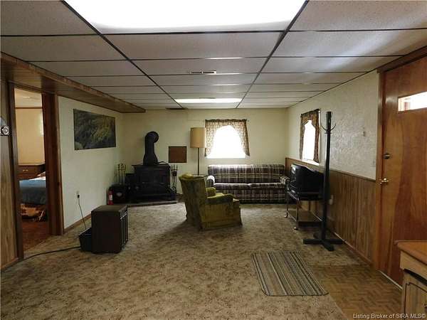 HUNTER'S And FISHERMAN take NOTICE!! This home comes fully furnished, sitting on 6 acres backing up to over 400 acres of GOVERMENT OWNED LAND, just 2.5 miles from I-64 on a dead end county road that is maintained by the county. A great covered deck for watching the wildlife, walkout basement, and shed. Little Blue River runs through this property. Perfect hunting and fishing location. This will make a great weekend retreat or permanent residence. Call to schedule your private showing today!