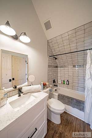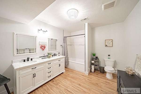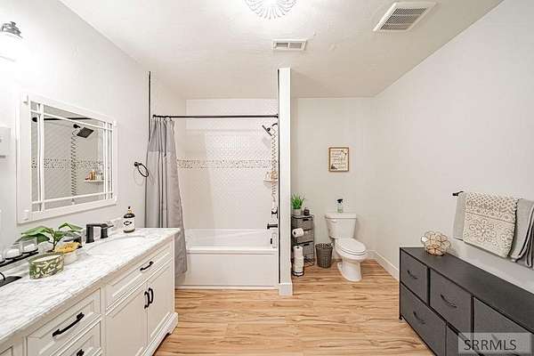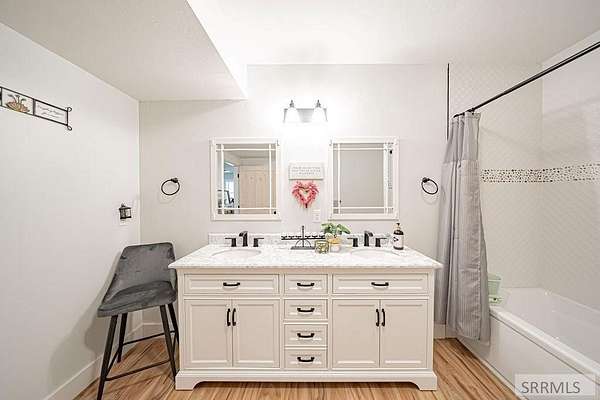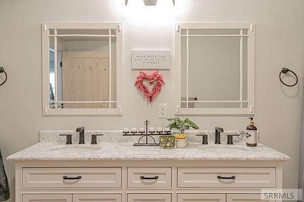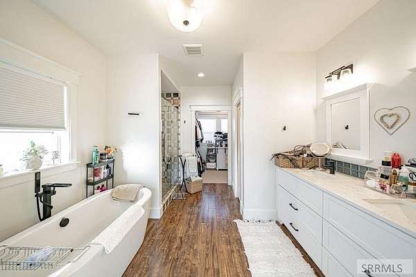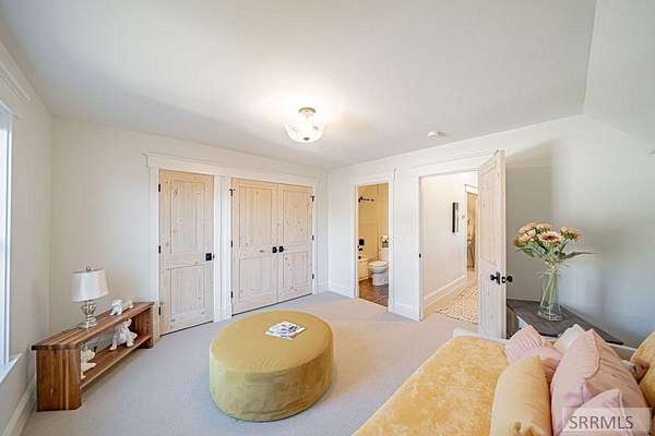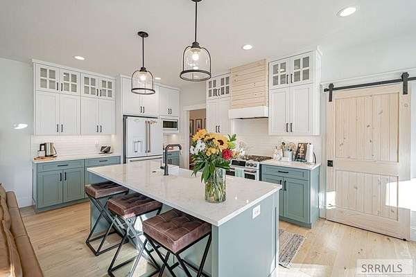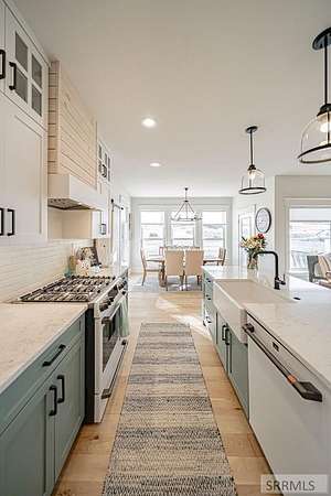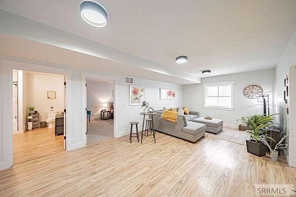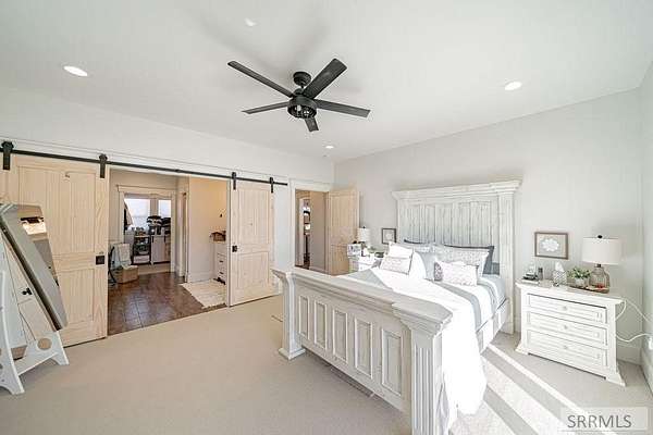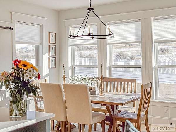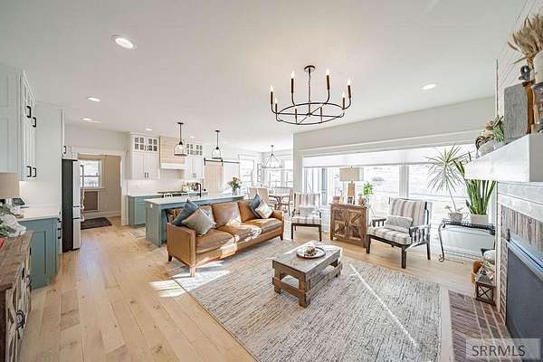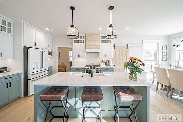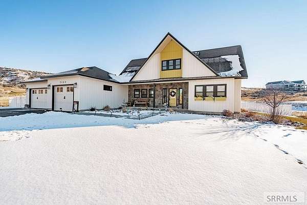 Welcome to this exceptional 5-bedroom, 4.5-bath modern farmhouse, originally showcased in the 2020 Parade of Homes. Thoughtfully designed and beautifully upgraded, this home offers bright, open living with soaring ceilings, custom finishes, and warm, inviting textures throughout. The gourmet kitchen features high-end Caf appliances, granite countertops, a spacious pantry, and an expansive dining area ideal for entertaining. The family room opens to a covered walkout patio overlooking 2.06 acres of open space. The main-level primary suite is a true retreat with a spa-inspired bath, tiled shower, and walk-in closet. Upstairs, enjoy two generous bedrooms-each with a private en-suite-along with a loft and dedicated study. The finished basement is built for entertaining, complete with a kitchenette, large gathering space, two additional bedrooms, cold storage, and a full bath accented with hand-selected stone from the South Fork of the Snake River. Additional highlights include 3-zone HVAC, an oversized mudroom, timeless wood floors, imported tile, and a spacious corner lot. A true custom home that blends elegance, function, and local character at every turn.