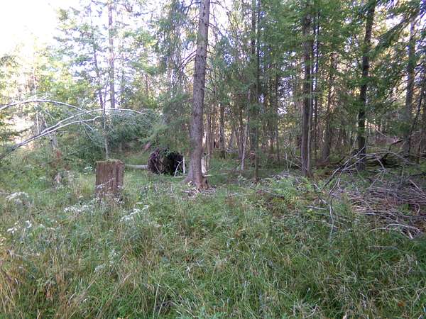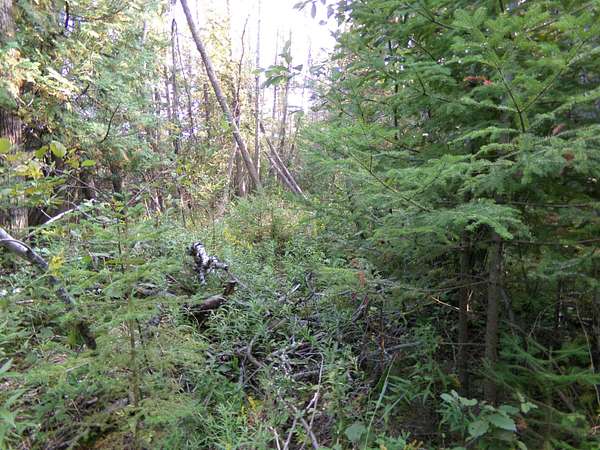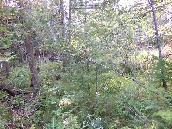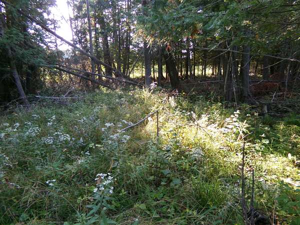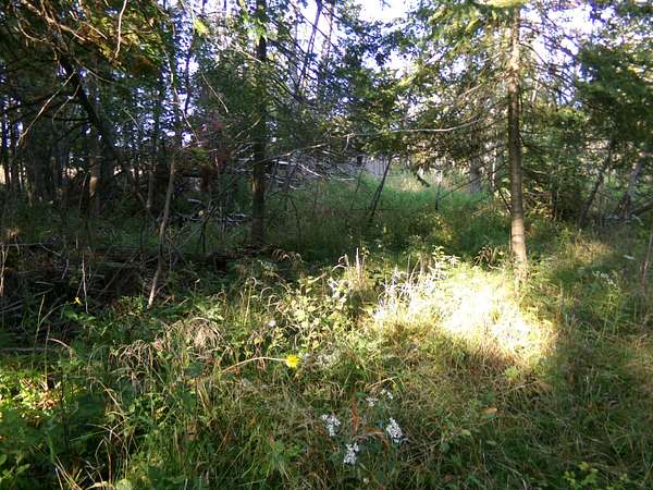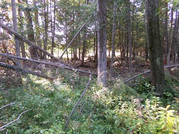 Est $123/moNearly half an acre tucked in beside a corn field. densely wooded and a haven for deer. This is a good place to go and hide for a while... Drive was installed, but its been some time, and would need to be cleared again.