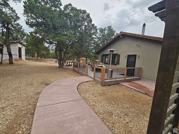 This beautiful home located close to Hwy 40 with year round access. The lot has large pinion trees with a nice yard. The home was built with love and comfort in mind. Large windows to enjoy the amazing views and wildlife. If you are looking for a nice quiet retreat this would be perfect on a dead end road with limited traffic. The home is secluded and would be a great vacation home or investment for a rental. The cement pad is completed for a hot tub and there is a large screen outside for a projector. The proper permits were not purchased for the home and didn't undergo the inspections. Part of this home is not on a permanent foundation and on railroad ties. That is why this home will not qualify for lending and cash only. An addendum will need to be signed stating the buyer is aware of the Note of Noncompliance due to the permits and missed inspections.