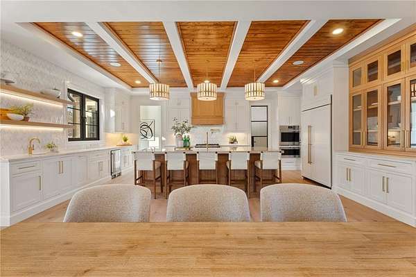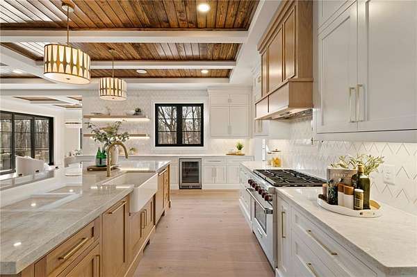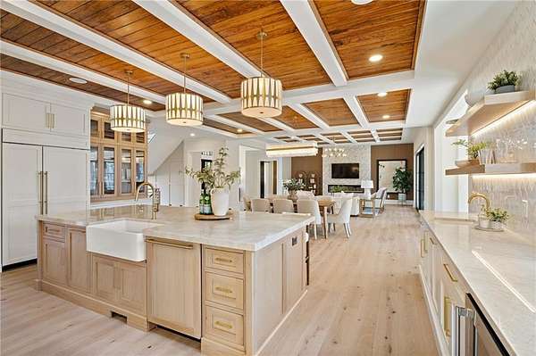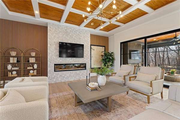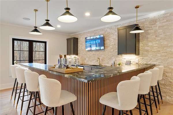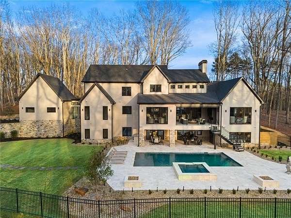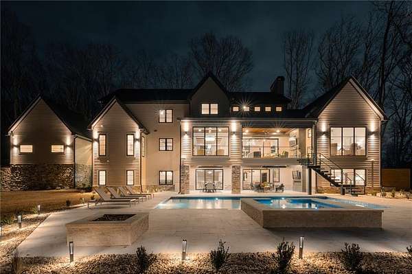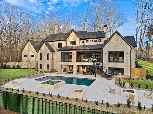 Luxury Estate on 3.45 Private Acres Welcome to a truly extraordinary 5-bedroom, 7-bath estate offering over 8,700 square feet of refined living, unmatched privacy, and breathtaking curb appeal. From the moment you enter the gated driveway framed by stately stone columns and travel the impressive 600-foot approach, you'll know you've arrived somewhere special. The exterior grounds are nothing short of spectacular, featuring professionally designed landscaping, stone retaining walls, and elegant landscape lighting that create a resort-like setting day and night. The backyard is an entertainer's dream with a stunning built-in pool and hot tub, more than 2,800 sq ft of paver patio, a gas fire pit, and irrigated flower planters-perfect for relaxing or hosting unforgettable gatherings. A 4-car garage with finished, coated floors completes the impressive exterior. The covered rear porches are designed for year-round enjoyment, featuring fireplaces, ceiling heaters, and a motorized screened upper porch. A custom exterior staircase with glass railings connects the spaces beautifully. Step inside and experience a home where every detail has been thoughtfully curated. The grand foyer opens to an incredible open floor plan highlighted by custom ceilings, exquisite trim, and designer wall details throughout. The show-stopping kitchen features Wolf appliances, a beverage cooler, and a fully equipped back kitchen/pantry that makes entertaining effortless. The main level also includes a beautiful powder room, private office, sunroom, wine closet, and a luxurious primary suite that feels like a private retreat-complete with an extraordinary spa-inspired bath and a boutique-style custom closet that connects directly to a perfectly designed laundry room. A dramatic 20-foot chandelier highlights the open staircase leading upstairs, where a bright loft living area and morning bar await. The second level offers three spacious bedrooms, three baths, and a second laundry room, plus a motorized attic staircase and generous storage. The walk-out lower level is built for relaxation and fun, featuring a sauna, expansive recreation and game area, a full bar for entertaining, a second primary suite, gym, additional bath, and abundant storage. Large sliding doors open directly to the pool patio for seamless indoor-outdoor living. This home also includes spray foam insulation, tankless hot water, security cameras, app-controlled systems, and top-of-the-line surround sound, along with premium exterior windows and doors. This is more than a home-it's a private luxury retreat designed for comfort, entertaining, and everyday living at the highest level. Come experience this magnificent property for yourself.