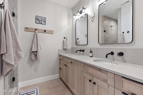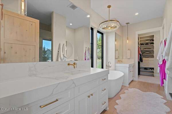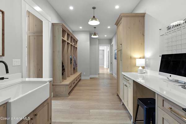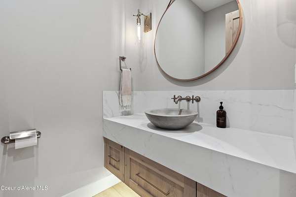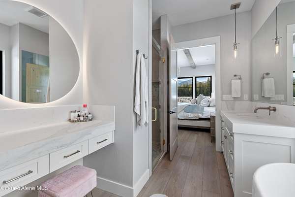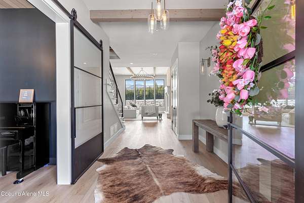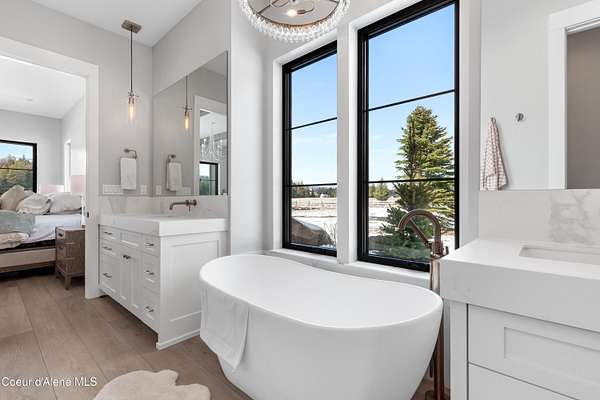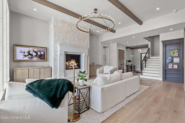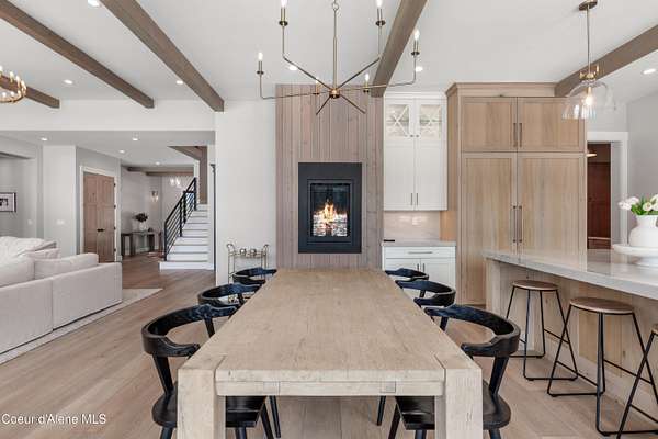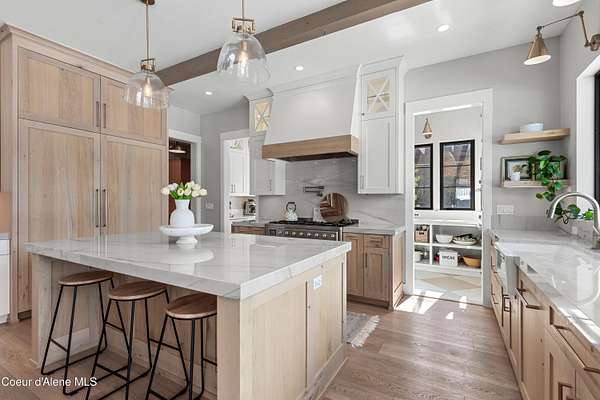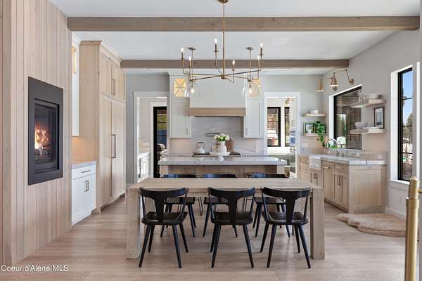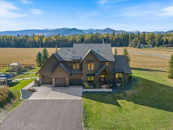 This peaceful Selle Valley home offers impeccably chosen finishes throughout, rivaling any home featured in Architectural Digest! As you drive down the private, paved driveway, complete with a 40x50 shop, you're greeted by breathtaking panoramic views of the Selkirk Range & Schweitzer Mountain. At the heart of this custom home is the gourmet kitchen, featuring quartzite countertops, stunning backsplash, large island, cozy fireplace and oak-detailed cabinetry. The butler's pantry serves as the perfect secondary prep space, ensuring effortless entertaining. The primary suite is a sanctuary of comfort offering a spa-like bath & giant soaker tub, floor-to-ceiling porcelain tile, & grand vanity. Step outside to enjoy amazing sunsets from your well-appointed outdoor kitchen. Relax under the pergola-covered porch, complete w/ a gas fireplace. Don't miss the opportunity to make this exceptional estate yours and experience the unparalleled beauty of Sandpoint living, just 10 minutes from town.