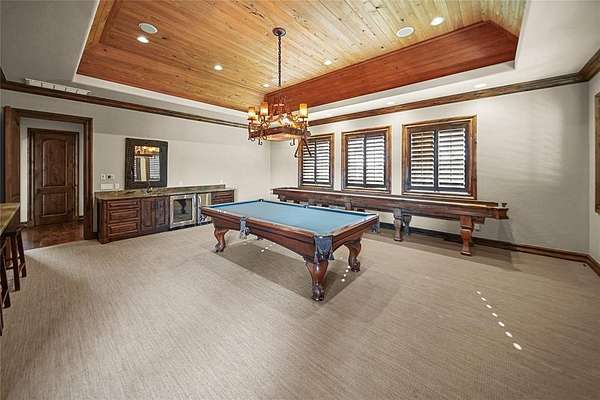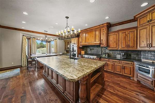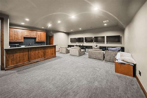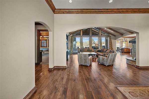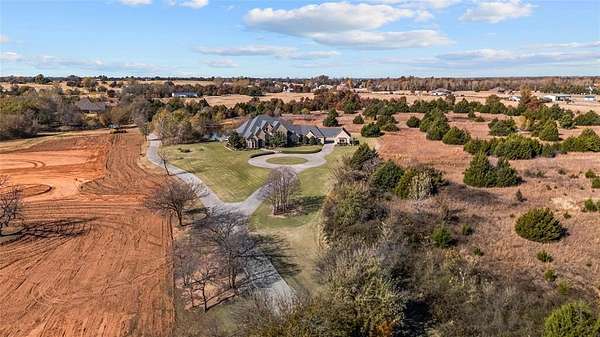 Stunning attention to detail inside and out this beautiful home in Newcastle. Sitting on 8.29 acres of perfect paradise, with the city just a few miles away. Whether your looking to get to OKC in 20 minutes or Norman in 25, this is your perfect oasis. Upon entering, you notice vaulted ceilings with a formal dining area on your right and the office on your left, but what you notice first are the floor to ceiling windows that looking out back. Realize that hosting all your family events is a dream come true here. Off the living room you will the first bedroom and game room, filled with a pool table, shuffle board table, and amazing attention to detail. The kitchen flows perfectly to the living room with beautiful cabinets and huge island. Off the kitchen is a beautiful nook for extra storage and wine area. The Primary Suite is just perfect with floor to ceiling windows, vaulted ceilings, and a beautiful primary bathroom features a large walk in closet with a powder mirror. Stunning oasis of a jetted tub, double vanity, and walk in shower to get the day started or finished! The safe is located across from the primary walk in closet. Upstairs you will find the other 2 bedrooms, for a kid paradise. Don't worry you won't have to haul the laundry up and down the stairs as their is a 2nd laundry room on the 2nd floor. Each upstairs bedroom has their own attached bathroom, so no fighting over shower or sink time in the morning or evenings. Finally, once you make your way to the 3rd floor, you will find your media room for family movie nights, or the perfect sports weekend! With 5 TV's and a wet bar to host all your family and friends. There is an additional 5 acres towards the east and 5 acres towards the west that is available as well for an additional purchase if you want to add more acreage to your paradise.