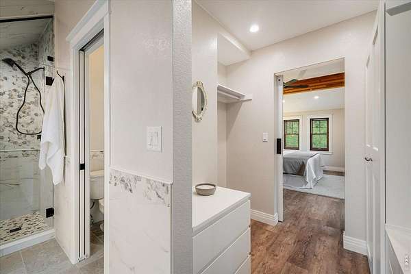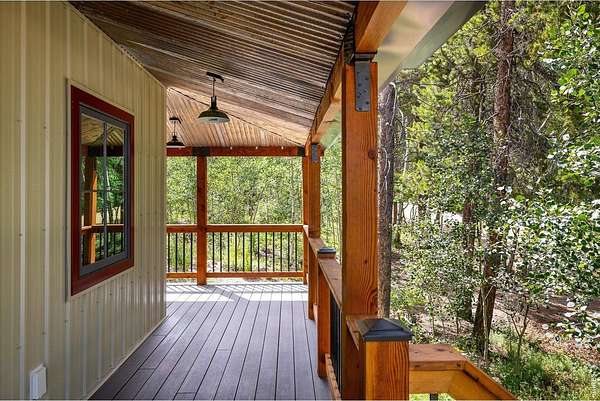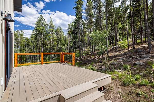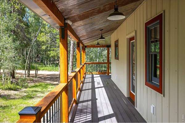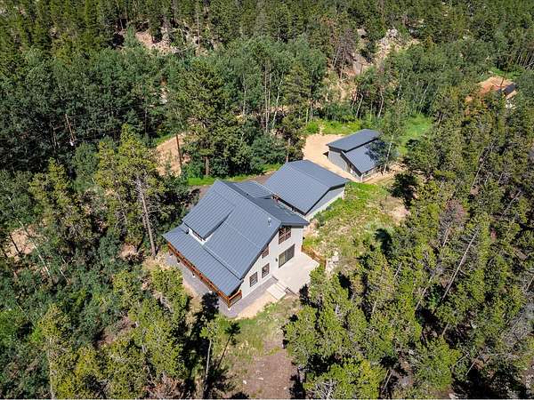 This custom-built mountain home offers modern systems and beautiful finishes throughout. The vaulted great room has a gas fireplace and connects to the kitchen and a loft above. There are three bedrooms, one on each level, both with soundproof walls, custom closets, and private bathrooms. The upper-level bathroom includes a steam shower and handmade tile. A laundry room and mudroom are on the main floor. The home sits on a private 1.67-acre lot, bordered to the south by 135 acres of undeveloped land. Wildfire mitigation and has a Wildfire Partners certification. The exterior is fire-resistant, with a 24-gauge metal roof and siding, Andersen Eagle windows, and multiple TimberTech decks, including an east-facing balcony with foothill views. A detached 720 sq ft garage and 780 sq ft outbuilding are also included. Inside features include solid pine doors, custom railings, luxury vinyl plank and carpet flooring (both compatible with radiant heat), and adjustable lighting. The kitchen has Brazilian quartzite counters, stainless steel appliances, a French door fridge, induction cooktop, motion-sensing hood, microwave oven, under-cabinet lighting, soft-close maple cabinets, custom wine racks, and a large island. The lower level includes an open area for media, fitness, or office use. Heating is provided by in-floor radiant heat with room-by-room controls and a gas fireplace with a remote thermostat. Additional systems include heat recovery ventilation, R54 ceiling insulation, and an interior fire suppression system. The home is SepticSmart certified, has a well with water treatment, and internet from Mountain Broadband. Located near Gross Reservoir, national forest land, Nederland, and Eldora. About 30-40 minutes to Boulder, Golden, and Denver; about 1 hour to DIA.