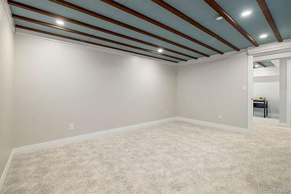 The lower level offers flexible space for media, fitness, or office use. Interior finishes include solid pine doors, custom railings, adjustable lighting, and luxury vinyl plank and carpet flooring, all compatible with in-floor radiant heat.