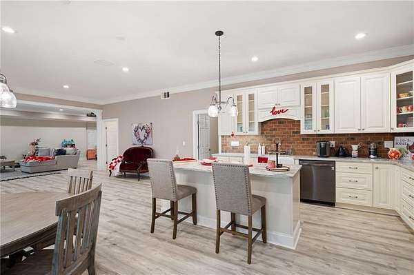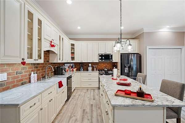 SAME BEAUTIFUL HOME WITH an UNBELIEVABLE updated price! Resort style living! Stunning custom 6BR/4.5BA home w/approx 6,400 sq ft on 2.89 acres! The weather may be chilly but the pool is warm - enjoy year round pool/spa! No expense was spared on flooring, trim details, electrical features, whole house dehumidifier, etc. A magnificently oversized front porch with stone accents set the tone; inside you'll find soaring ceilings, rich millwork, and sun-splashed rooms designed for gatherings. The chef's kitchen features custom cabinetry, a large island, and exposed brick-open to fireside living and views of the backyard oasis. Step outside to a heated saltwater and gunite pool & spa with waterfall, multiple patios, and total privacy. The fully finished terrace level is ideal for multi-generational living with a beautiful second full kitchen, fireside family room, bedrooms, updated baths, and a second laundry. Lots of added parking that includes a side-entry garage and level drive. Named one of Paulding's most beautiful properties! NO HOA!!!