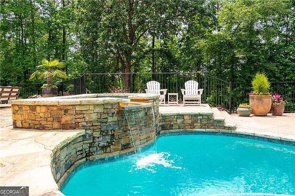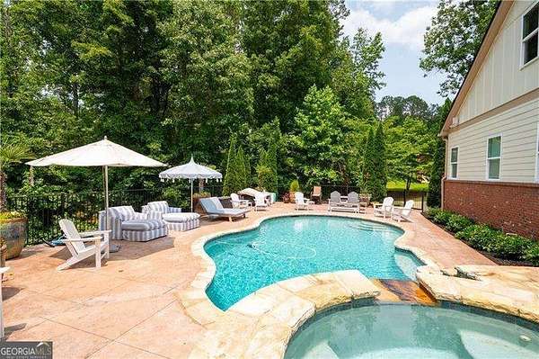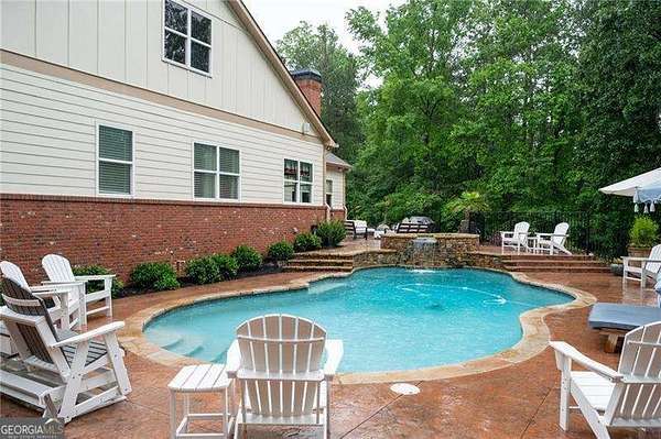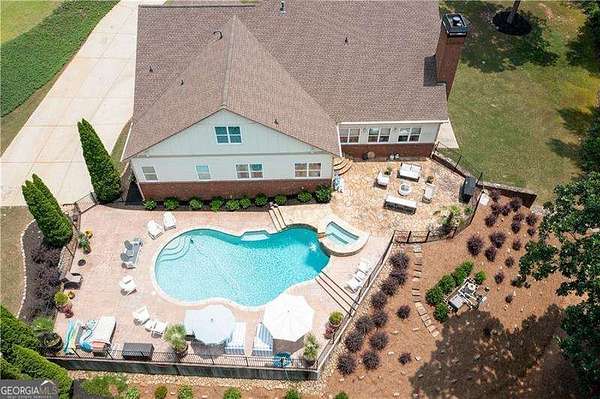 AMAZING Custom Home , 2.89 Private Acres, NO HOA, 6 bdrms/4.5 baths! No expense was spared on flooring, trim details, electrical features, whole house dehumidifier, etc. A magnificently oversized front porch with stone accents set the tone; inside you'll find soaring ceilings, rich millwork, and sun-splashed rooms perfectly designed for entertaining. The chef's kitchen features custom cabinetry, a large island, and exposed brick-open to fireside living and views of the backyard oasis. Step outside to a heated saltwater and gunite pool & spa with waterfall, multiple patios, and total privacy. The fully finished terrace level is ideal for multi-generational living with a beautiful second full kitchen, fireside family room, bedrooms, updated baths, and a second laundry. Lots of added parking that includes a side-entry garage and level drive. The weather may be chilly but the pool is warm - enjoy year round pool/spa!