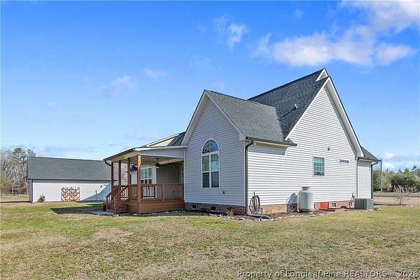 RARE OPPORTUNITY FOR ACREAGE AND PRIVACY! Seller offering $4,000 use-as-you-choose-apply it toward closing costs or repairs-plus up to $500 home warranty. Experience peaceful country living on 2.5 acres of equestrian-friendly land, where a long private entry leads you to this spacious home designed for comfort and functionality. Inside, the home features 3 bedrooms, 2 bathrooms, and a large bonus room above one of the two-car garages, providing a total of four garage spaces-perfect for vehicles, storage, hobbies, a workshop, or home gym. The open interior showcases high ceilings and luxury vinyl plank flooring, creating a bright and inviting atmosphere throughout. The kitchen is ideal for both everyday living and entertaining, featuring granite countertops, stainless steel appliances, ample cabinetry, a formal dining area, and a convenient sit-up bar. The owner's suite provides a relaxing retreat with a walk-in closet, garden tub, and tiled shower. Enjoy quiet mornings on the large front porch or unwind in the evening on the freshly painted covered back deck, perfect for taking in beautiful Carolina sunsets. The backyard also features a firepit area-ideal for gathering with friends and family under the Carolina night sky. Additional highlights include a whole-house water purification system private well (no water bill), spacious equipment shed, and a wall generator plug for added peace of mind. Bring your horses and enjoy the space, privacy, and charm of country living.