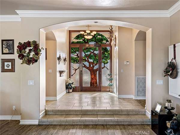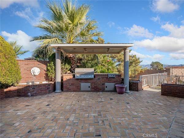 Relax in your an impressive park-like back yard! Step into an entertainer's paradise complete with LARGE STUCCO COVERED BACK PATIO, OUTDOOR KITCHEN, CHARMING GAZEBO, palm trees, TRANQUIL KOI POND WITH WATERFALL AND COZY FIRE PIT - for nice gatherings or peaceful evenings at home. Also a SECRET GARDEN area with water fountain and perennials!