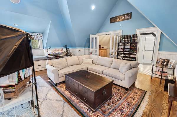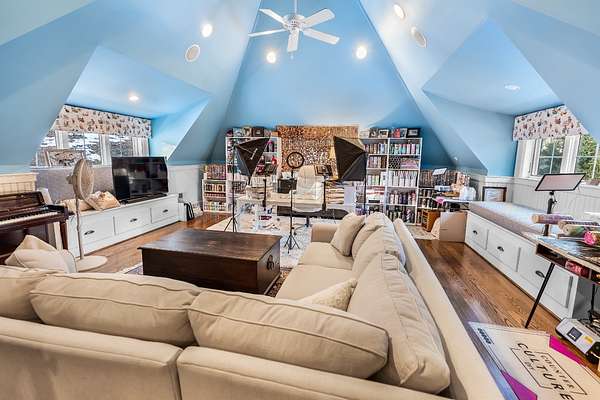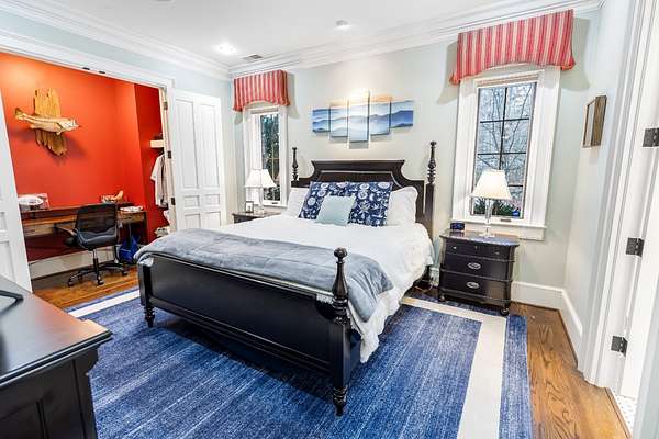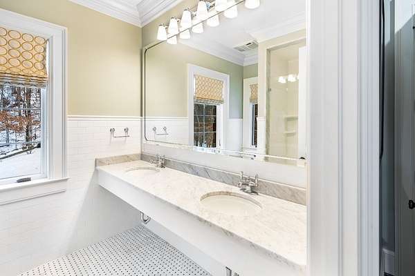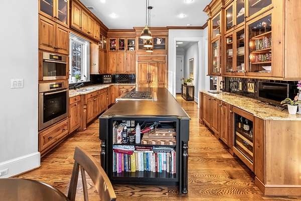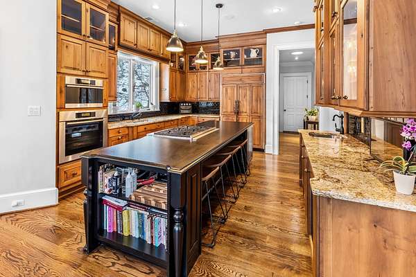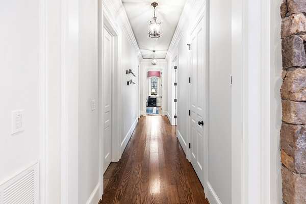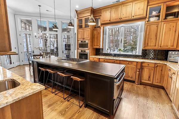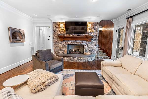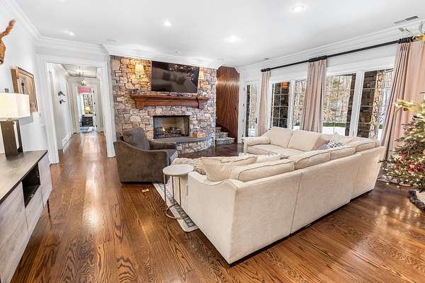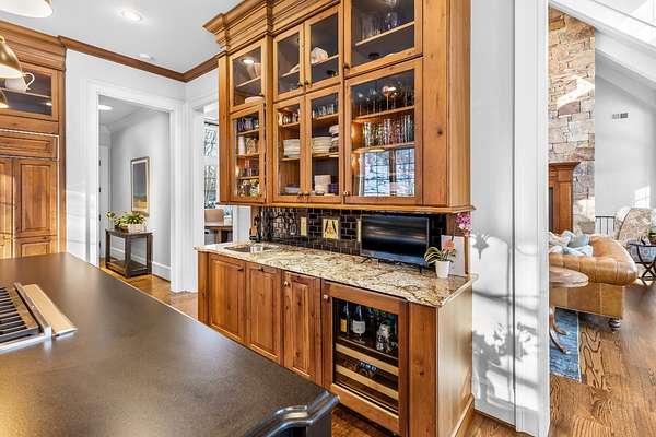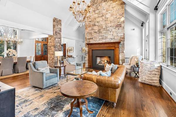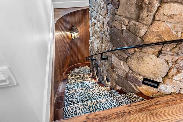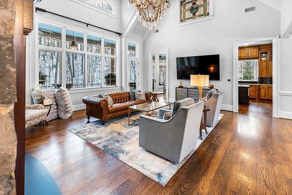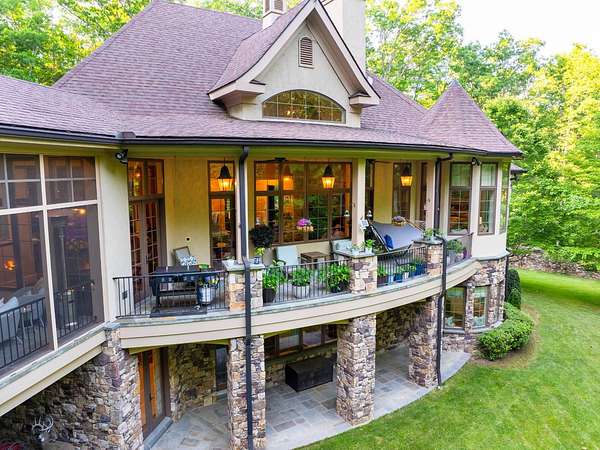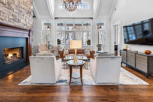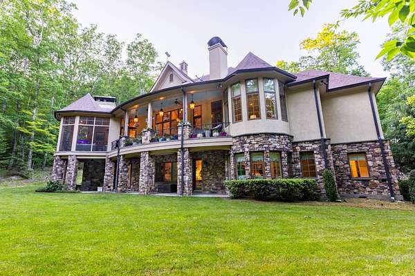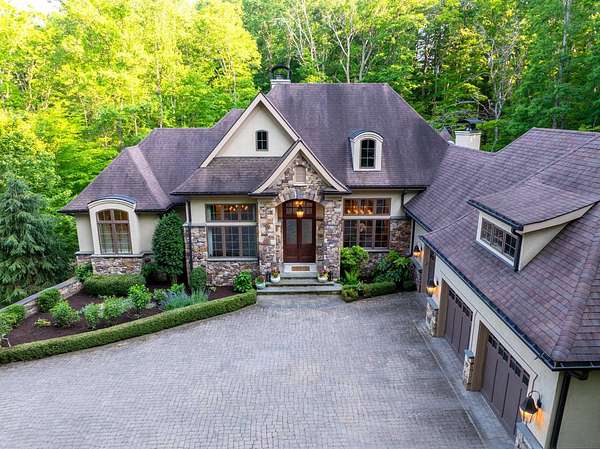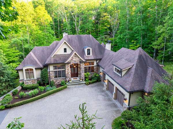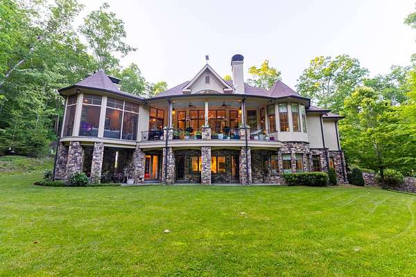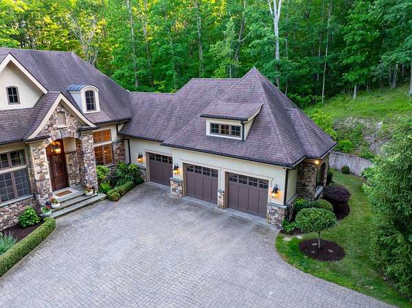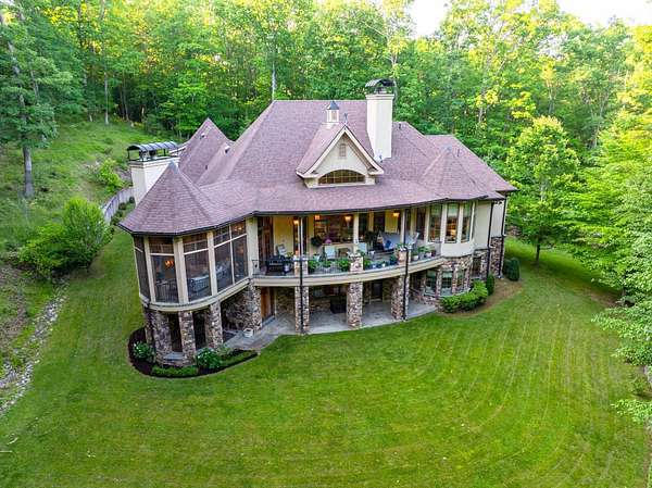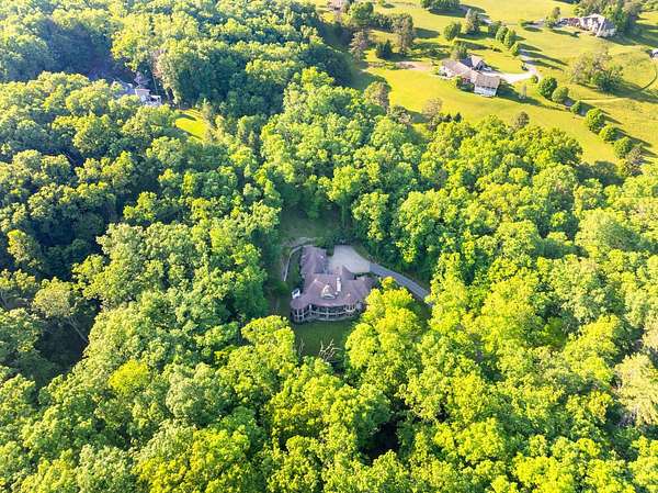 Tucked away in a tranquil, private 6.8-acre wooded landscape, Hollowcrest is a stunning 5-bedroom luxury residence, just 5 minutes from the heart of downtown Lewisburg. This architectural masterpiece masterfully blends modern design with local craftsmanship, offering a sophisticated retreat that balances both privacy and proximity to the charm of Lewisburg. Upon arrival, the striking stone exterior, crafted from nearby Peters Mountain, beautifully contrasts with the warmth of wooden accents and copper details. Bluestone steps lead to a welcoming entry with mahogany double doors, introducing the elegance inside. The grand foyer, with its soaring 12-foot ceiling, opens to a living room featuring dramatic 23-foot vaulted ceilings, a striking gas fireplace, and a custom stained-glass window, all bathed in natural light. The open floor plan ensures a seamless flow between living spaces, perfect for both entertaining and relaxing in style. The heart of the home is the gourmet kitchen, boasting rustic cherry cabinetry, golden crystal granite countertops, and a 4x10-foot island with honed black granite. High-end appliances, including a Wolf gas range, Miele ovens, Sub-Zero refrigerator, and two Miele dishwashers, make this kitchen both functional and beautiful. Adjacent to the kitchen are a cozy breakfast nook, a formal dining room, and a screened porch, each offering a unique setting for meals and gatherings. The main-level master suite is a private retreat, featuring a spacious bedroom, a curved sitting alcove bathed in natural light, and two custom walk-in closets. The luxurious master bath includes a double vanity, a Kohler jetted soaking tub, and a rain shower. A beautifully designed powder room with a cloisonne sink and an attached 3-bay garage further enhance the home's charm. On the lower level, the family room opens to two covered patios, one of which features a gas fireplace and is designed for a hot tub. Three additional bedroom suites, a wine cellar, a dry sauna, and a workout room offer plenty of space for relaxation and entertainment. Surrounded by lush landscaping, Hollowcrest provides the perfect blend of privacy and access to the vibrant community of Lewisburg, named the Coolest Small Town in America. Residents enjoy a wide array of cultural events, fine dining, shopping, and outdoor recreation, with the nearby Greenbrier Resort and Greenbrier River Trail offering additional amenities. Hollowcrest is more than just a home-it's a lifestyle that combines luxury, nature, and the vibrant community of Lewisburg. *Valued amazingly well at under $250 per square foot with top of the line fixtures and finishes* This property is listed by the owner, who is a licensed real estate broker***