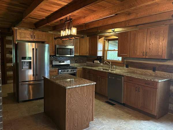 This beautiful Log Home has been updated with granite, Maytag Stainless appliances & hand-scrapped hardwood. The circular driveway has fresh rocks and leads to the detached shop. The shop has one side that is enclosed w/electric, Fiber Internet, and Heating and Cooling! The 1st floor has 2 bedrooms and a full bath, the upstairs has a bedroom w/a bath and large walk in closet. The open bonus room (loft area) is a great getaway area. This log home sits on 2.64 acre lot that offers a KOI Pond as well. There's a wood stove outside that isn't being used currently. So much to offer you in this charmer!
