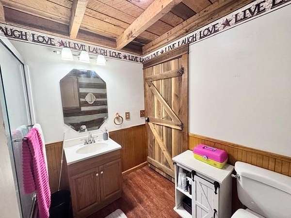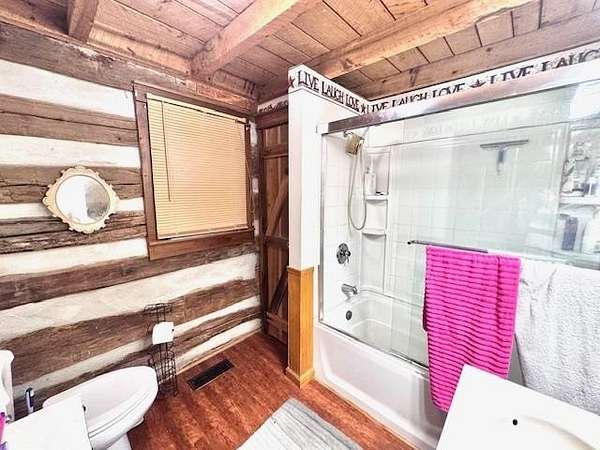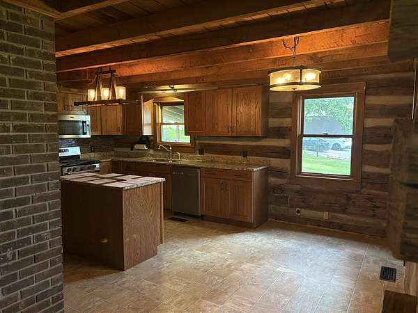 Est $1,475/moThis beautiful Log Home has been updated with granite, Maytag Stainless appliances & hand-scrapped hardwood. The circular driveway has fresh rocks and leads to the detached shop. The shop has one side that is enclosed w/electric, Fiber Internet, and Heating and Cooling! The 1st floor has 2 bedrooms and a full bath, the upstairs has a bedroom w/a bath and large walk in closet. The open bonus room (loft area) is a great getaway area. This log home sits on 2.64 acre lot that offers a KOI Pond as well. There's a wood stove outside that isn't being used currently. So much to offer you in this charmer!