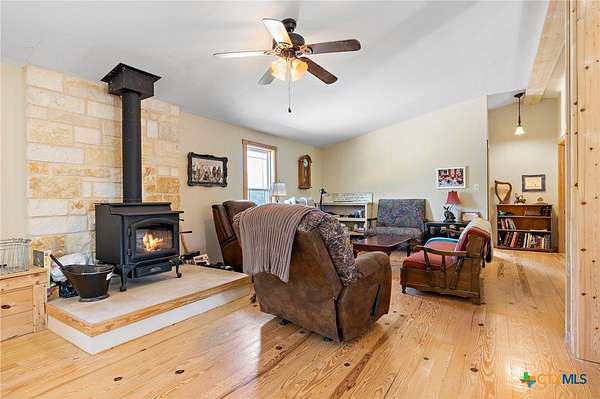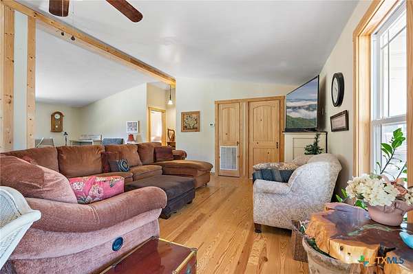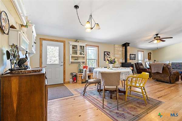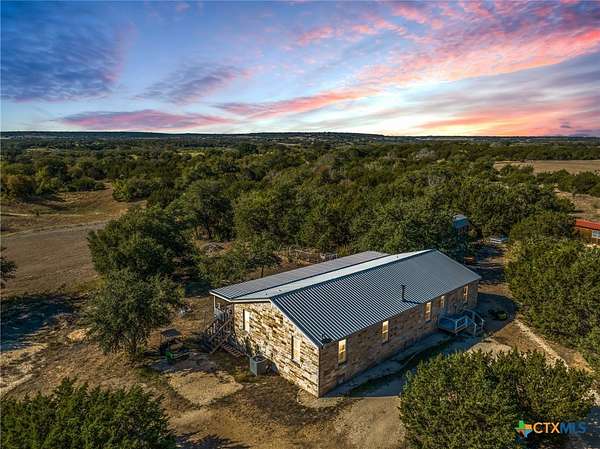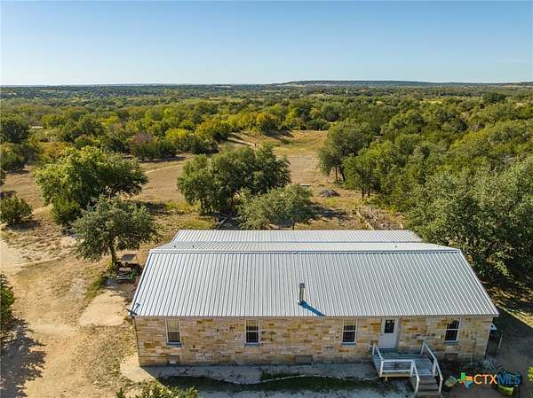 Welcome to your own private retreat on 20.33 breathtaking acres, where wide-open space, exceptional views, and outdoor adventure await. This 3 bedroom, 2 bath modular home with an office, which could be converted into an additional bedroom, offers a thoughtfully designed open floor plan with vaulted ceilings in the living area, creating an airy, light filled space perfect for relaxing or entertaining. Hardwood floors flow throughout the home and a free standing wood stove, add warmth and timeless character. The 10 ft X 60 ft front porch creates an atmosphere of pure relaxation as you enjoy morning coffee or gaze up at the wide Texas night sky alive with starlight. Step outside and experience the true magic of this property. Expansive acreage, with hunting permitted, and numerous outbuildings make this an outdoor enthusiast's dream - perfect for recreation, storage, animals, or all your hobbies. Whether you are enjoying the peaceful scenery, exploring the land, or taking in the exceptional views, this property offers privacy without sacrificing convenience. The property is centrally located (10 minutes from Evant & Hamilton, 30 minutes from Gatesville, Goldthwaite, & Lampasas), yet wonderfully secluded, this rare offering combines comfort, functionality, and lifestyle all in one setting!