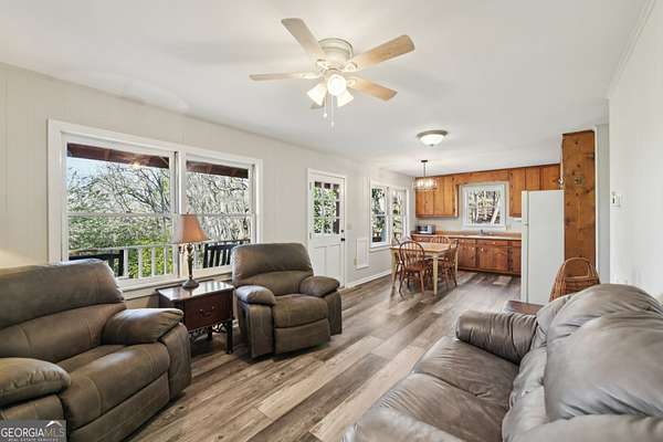 Your Mountain Escape Awaits at 714 Deer Wood Trail! Tucked away on 1.7 private acres with peaceful mountain views, this charming cabin offers the perfect blend of comfort, seclusion, and convenience. Whether you're searching for a full-time residence, a weekend getaway, or a turnkey investment opportunity, this move-in-ready home checks every box. Inside, the main level features an open kitchen and living area, one bedroom, one bathroom, and a welcoming front porch. The covered deck off the living room is the highlight-a quiet retreat ideal for morning coffee, evening sunsets, or simply unwinding in the cool mountain breeze. Upstairs, two additional bedrooms provide flexibility, totaling three bedrooms for guests, family, or rental potential. The property delivers the outdoor lifestyle buyers love: a gated private driveway, ample parking, two fire pits, and a dedicated horseshoe area-all surrounded by the privacy of your own wooded acreage. With no HOA, you have the freedom to enjoy the property your way. Previously used as a long-term rental, the home may also qualify for short-term rental use with proper permitting. Located minutes from downtown Cleveland, Dahlonega, and Helen, you'll enjoy quick access to local restaurants, wineries, hiking trails, and all the outdoor recreation North Georgia is known for. A rare opportunity to own a private, affordable mountain retreat with endless potential-don't miss it. Disclaimer: All information deemed reliable but not guaranteed and should be independently verified. Photos & lot lines may be virtually staged to assist buyers in visualizing the property's potential. Contact the listing agent for more information or to schedule a private showing.