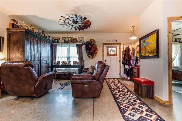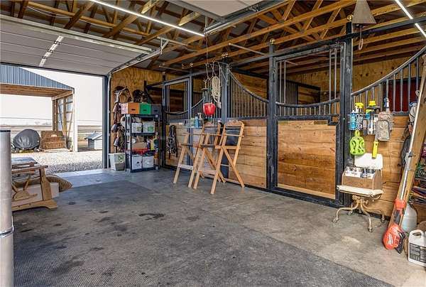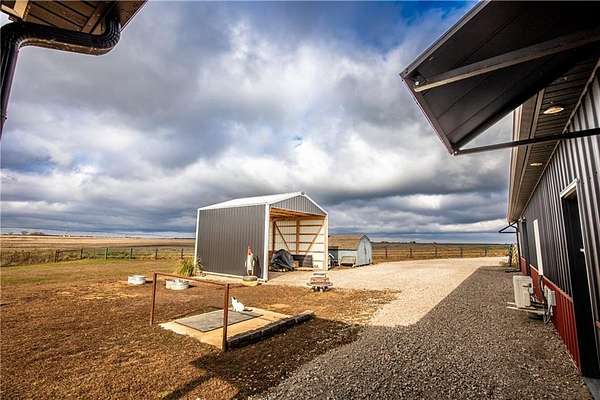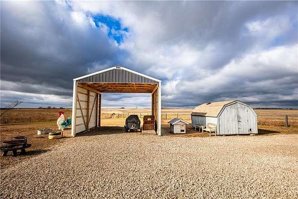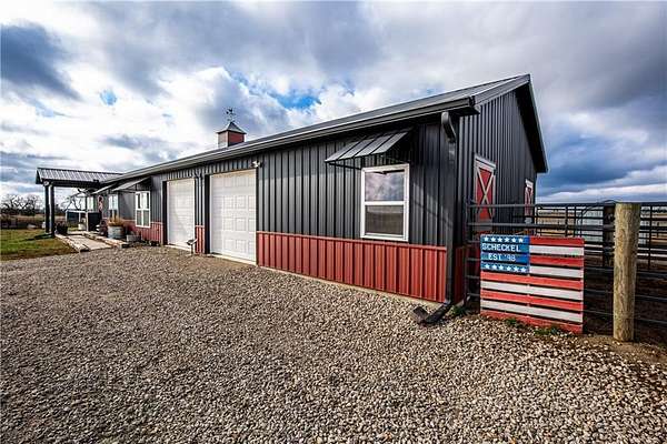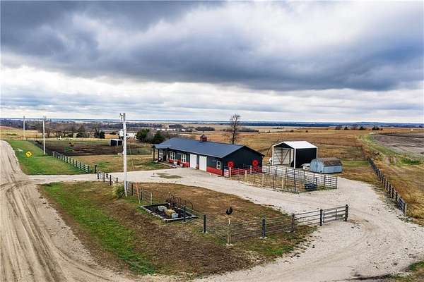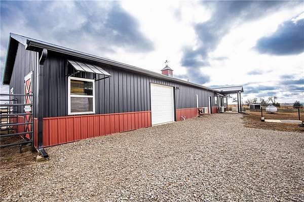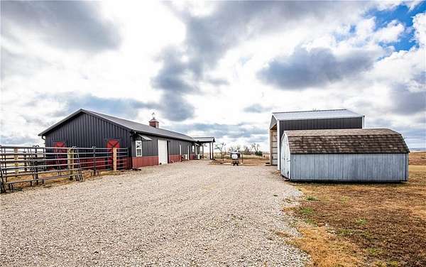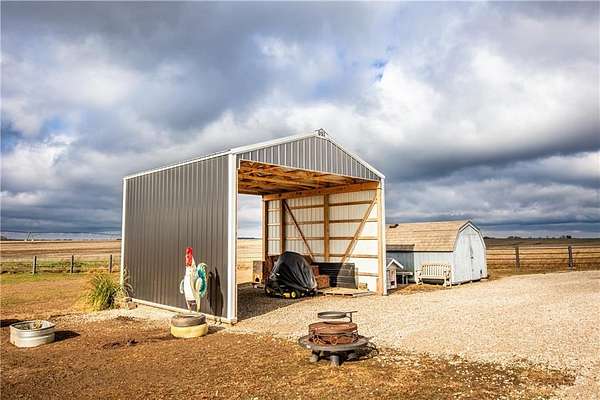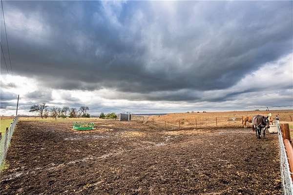 Horse lover's dream! Experience this one of a kind custom built home on 5 acres, set up to pamper your equine family members! You'll feel right at home in this 1 conforming bedroom (with 2 nonconforming bedrooms), 2 full baths home. Open floor plan with an eat-in country kitchen, beautiful primary bedroom and bathroom suite, convenient laundry off the kitchen, 2 car attached garage and 2 horse stalls with run out paddocks attached to the home as well! The home is all electric but comes with piece of mind! There is a propane powered, whole house Generac generator system for the unfortunate times when the power is out along with a 500 gallon propane tank. The 5 acres is fully fenced with cross fencing and a pond. There is a newly built QSI hay shed along with other sheds, too. With views for miles, you won't find a better spot to watch the amazing Kansas sunrises, sunsets and thunderstorms! If horses aren't your jam, the property would be amazing for the show jockeys in the crowd, too! It would be perfect for the cattle, goat or swine show folks as well or simply turn the property into your very own rural oasis away from the crowds and busyness of town.