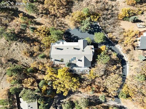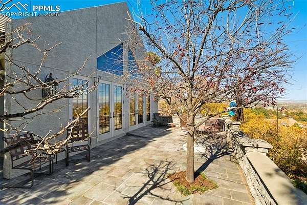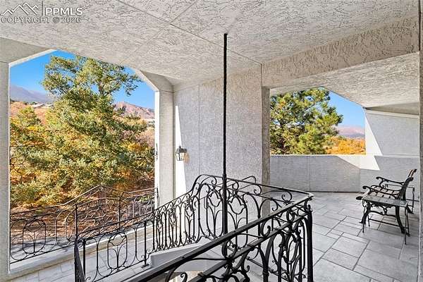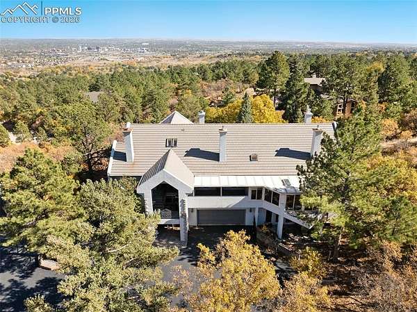 Experience luxury and artistry in this custom-built contemporary raised ranch nestled on a private 1.5-acre lot in the sought-after Skyway Park Estates. This exquisite property features vast windows, skylights, and multiple decks, patios, and walkouts, filling the home with natural light and stunning views of Garden of the Gods, city lights, and majestic mountains. Inside, discover all-natural solid stained woodwork, custom hand-forged metal railings, and unique architectural touches throughout. Relax & unwind in the hot tub, or enjoy one of the four cozy fireplaces. The home offers both an upper-level and lower-level office, a spacious bonus room off the primary suite, and an elevator for added convenience. Additional amenities include a full house sound system, wide doorways, hot water heat with a new boiler installed in 2022, an impressive entry with double doors, a custom dog wash, and an oversized garage with a newly installed overhead door. Located in award-winning school district 12, with quick access to Hwy 24, downtown, I-25, schools, and local trails, this home is a rare fusion of art and luxury tailored for sophisticated living.