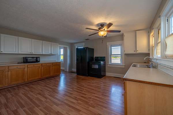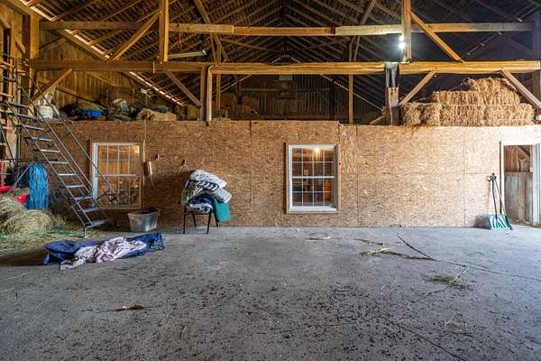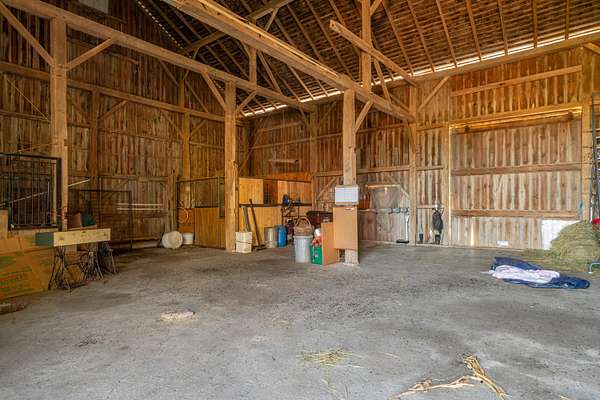 Tucked 300 feet off the road and surrounded by 17 breathtaking acres of peaceful farmland, this 1919 farmhouse is where timeless character meets endless opportunity. The home was freshly painted in June 2025 and greets you with the warmth of original 3'' wood floors, tall ceilings, and sun-filled rooms that radiate comfort and nostalgia. The inviting country kitchen serves as the true heart of the home-perfect for home-cooked meals, morning coffee, and laughter that lingers. It has loads of cabinets for storage and counterspace for food prep. Four spacious bedrooms offer flexibility for family, guests, or an office, while the oversized 9x13 bathroom provides convenience and comfort during busy mornings, including a tub/shower combo and vanity with storage. The upstairs space allows for the easy addition of a second bathroom, creating room for future expansion. UPDATES: updated electric and a 3-year-old furnace. Step outside, and the possibilities unfold. A classic 40x70 barn stands proud with sturdy horse stalls, a concrete floor, and a loft capable of holding up to 2,000 bales-ideal for livestock, equipment, or creative pursuits. The 30x40 outbuilding is perfect for a workshop, storage, or classic car collection. The acreage is currently cash-rented and CAUV-qualified, offering both income and valuable tax benefits. Picture your mornings surrounded by open skies, evenings by golden sunsets, and weekends exploring the land that's truly your own. Conveniently located near Rt. 49 yet tucked away in its own private world, this exceptional property is more than a home-it's a lifestyle, a legacy, and the peaceful retreat you've been searching for. Here, you don't just live on the land-you live with it. NO HOA. Located in Clay Twp, No city taxes. Northmont SD.