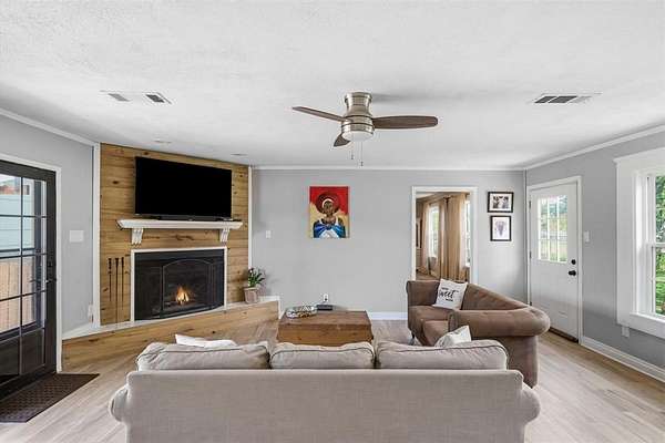 Space, income potential, and functionality come together on this 1.99± acre Kaufman property featuring a remodeled home, guest suite, and large workshop. This 3 bed, 3 bath home PLUS bonus room for an additional ensuite bedroom all offers comfort and flexibility just minutes from Hwy 175 with an easy commute to Dallas. Inside, the open layout is filled with natural light, warm finishes, and inviting living spaces. Main living room features cozy WB fireplace, while the oversized dining area with a 2nd fireplace creates the perfect setting for gatherings. Kitchen offers ample cabinetry, generous workspace, and layout designed for everyday use. Primary suite serves as a private retreat with dual walk in closets, dual sinks, and jetted garden tub. Additional oversized suite provides flexibility for guests or extended stays, complete with updated bathroom and large walk in shower. Massive laundry room with cabinetry could double as pantry, adds convenience and storage. Outside, enjoy a park like setting with mature oak trees, a spacious deck, above ground pool, fencing, chicken coop, raised garden beds, and fire pit area perfect for evenings outdoors. Separate guest suite currently used as a short term rental offers strong income potential. Land is fully usable and ideal for animals, hobbies, or homesteading. 54'x26' workshop with three roll up doors, electric, and workbench provides excellent space for equipment, projects, or business use. Air BNB for the past 8 years with an annual income between $10,000-12,500. Located approximately 35 to 45 minutes from Dallas and about 15 minutes to Kaufman, with easy access to Terrell and Forney for shopping, dining, and entertainment, this property offers the space, versatility, and convenience buyers are looking for.Recent upgrades include: 2018 Roof, 2019 HVAC, 2025 WATER HEATER, 2025 LUX VINYL PLANK FLOORING THROUGHOUT. Included: Fridge, washer, dryer, lawnmower, trampoline & basketball hoop. Virtual and video tour available.