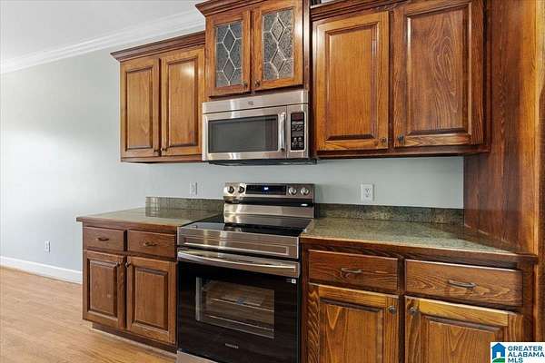 AN ICONIC SOUTHERN ESTATE OF DISTINCTION Introducing a truly exceptional Pinson luxury estate-a statement home that embodies grandeur, elegance and refined Southern living. From the moment you arrive you are greeted with privacy from the metal security fencing to the circular drive that is surrounded by the 3+ acres provides elegance and functionality that commands attention. With nearly 3,200+sq ft of impeccably curated interiors where scale, craftsmanship and timeless design converge. A dramatic hand crafted mosasic foyer, crowned by a breathtaking 14 ft ceilings, sets a tone of sophistication that continues throughout the home. A KITCHEN DESIGNED FOR CULINARY ARTISTRY offering new appliances with custom cabinetry with stained glass inset accent. Whether hosting elegant dinner parties or intimate family gathering in your formal dining room this space was designed to impress. New HVAC & roof. Three-car carriage garage door, interior workshop area plus 2 barn/storage/outbuilding.