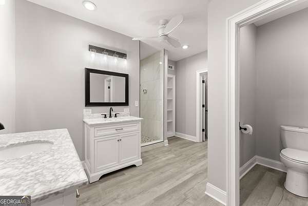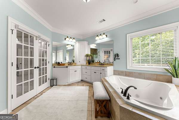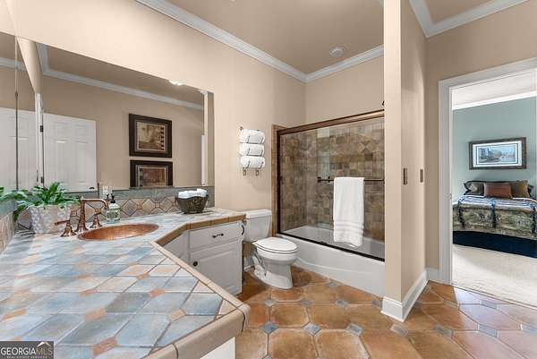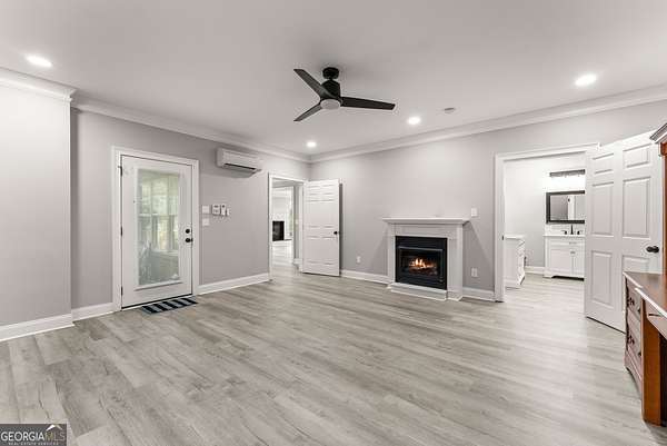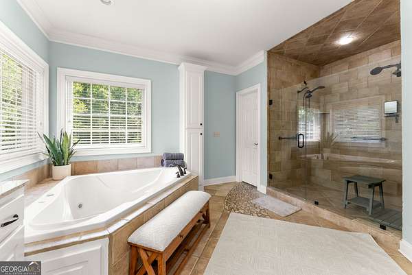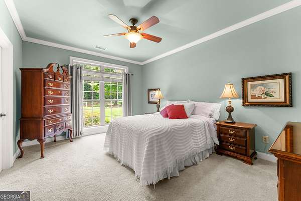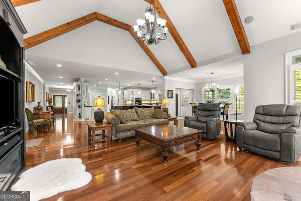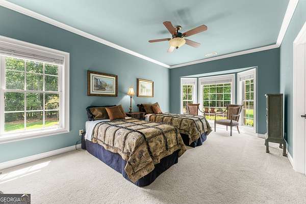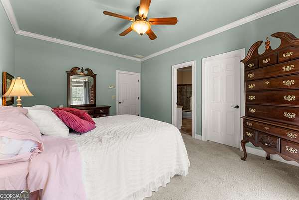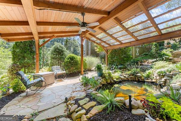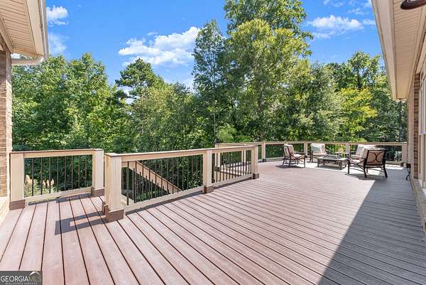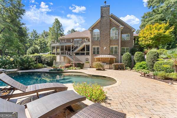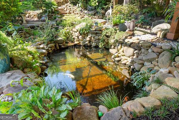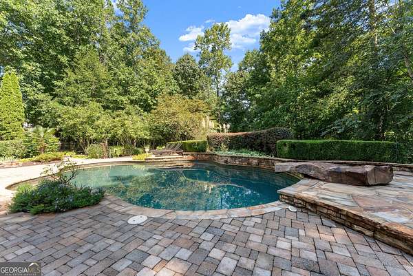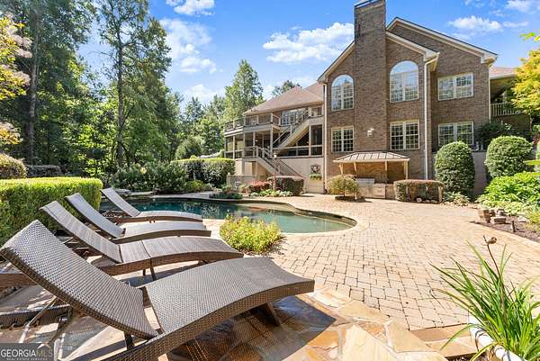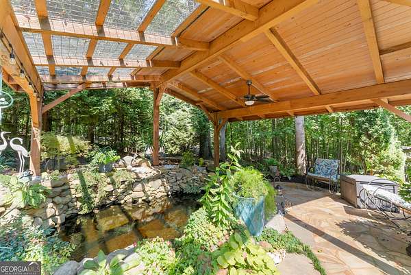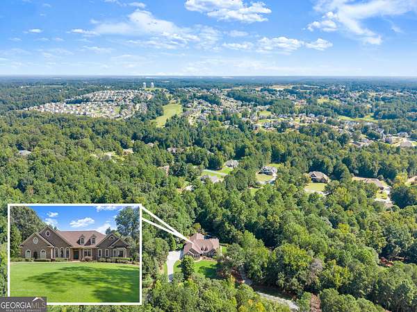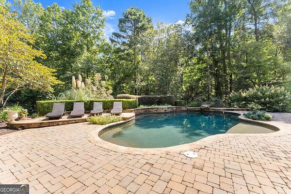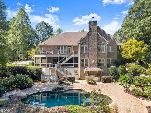 Luxury Estate on 2.24 Private Acres. Tucked within an exclusive estate lot subdivision, this sprawling 1-1/2-story ranch blends elegance with resort-style living. The main level offers 3 bedrooms, 2.5 baths, soaring 9-ft ceilings, crown molding, hardwoods, and an open floor plan. The oversized owner's suite features a private deck overlooking the pool. Upstairs includes a bonus room, full bath, and walk-in stand-up attic. A fully finished terrace level apartment adds a living area and 1.5 baths. The grounds are a showpiece-manicured front lawn, garden paradise with koi pond, trex decking, and a stunning gunite pool with pebble finish, flagstone decking and stone accents. Beyond the pool, wooded privacy leads to a fire pit retreat with stone wall and patio. A rare opportunity for refined living with privacy, beauty, and space to entertain. The property is located 1 mile from the future home of the Hoschton High School cluster.